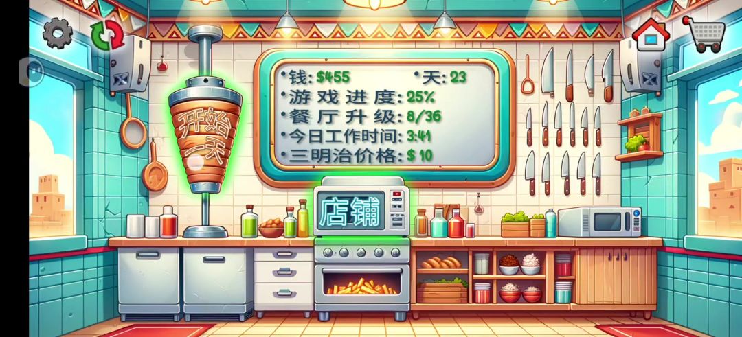 《沙威玛传奇》,一款风靡全网的模拟经营游戏。在这里,您将扮演一名沙威玛饭店的老板,体验从切肉、炸薯条、加酱到卷饼的全过程,满足顾客的多样化需求。 游戏以其魔性洗脑的背景音乐、异域口音的中文旁白、美漫风格的人物画风和手忙脚乱的操作模式,迅速在全网爆红。 玩家需要在有限的经营时间内,通过快速卷饼来赚取更多的金币,同时还要应对吃霸王餐的乞丐和小偷等角色。 《沙威玛传奇》以其独特的游戏体验和魔性的音乐,让