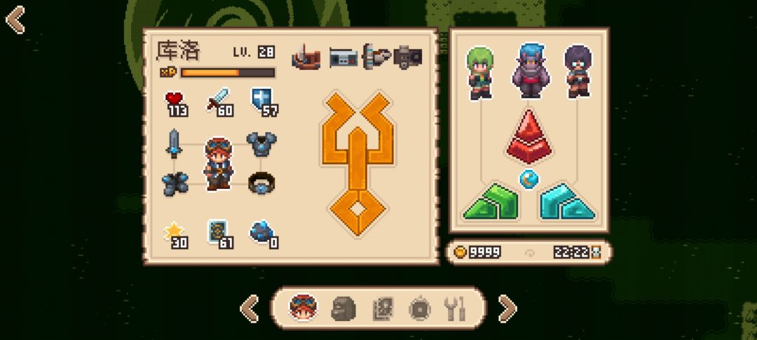 第一次通关的时候只有百分之七十多,这个界面里主角四人组都不全,少了蒙诺斯。 肝到百分之百之后这里多了最后的BOSS和在后面钓鱼🎣的先知 ☑️