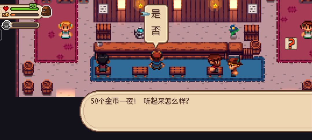 不用住,往上走有个头顶感叹号的服务员,这时候对不对话都行,再往右稍微一走脚下有个通道,进到内院里,有个人对话,先让他骗走身上所有钱,再回到之前有感叹号的服务员那里找她领工作,挣到150金币就能出城了