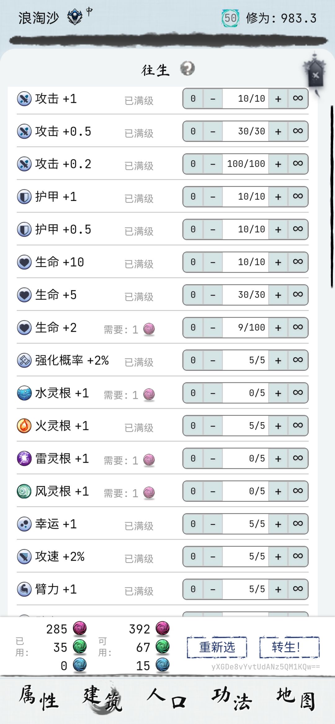 这个游戏就是不断转生拿转生点,风点,水点,去提升属性才能通关后面的关卡。 2-9转生给5转生点,3-3转生给8转生点和1风点,4-5转生给8转生点和2风点1水点。(提示:不要用10转生点换1风点。) 目前版本总共需要472转生点,67风点,25水点。 如果你是刚开始玩的,可以先2-9转生27次。再3-3转生17次,最后4-5转生25次。总转生69次。 你也可以第一次2-9转生,然后3-3转生34次