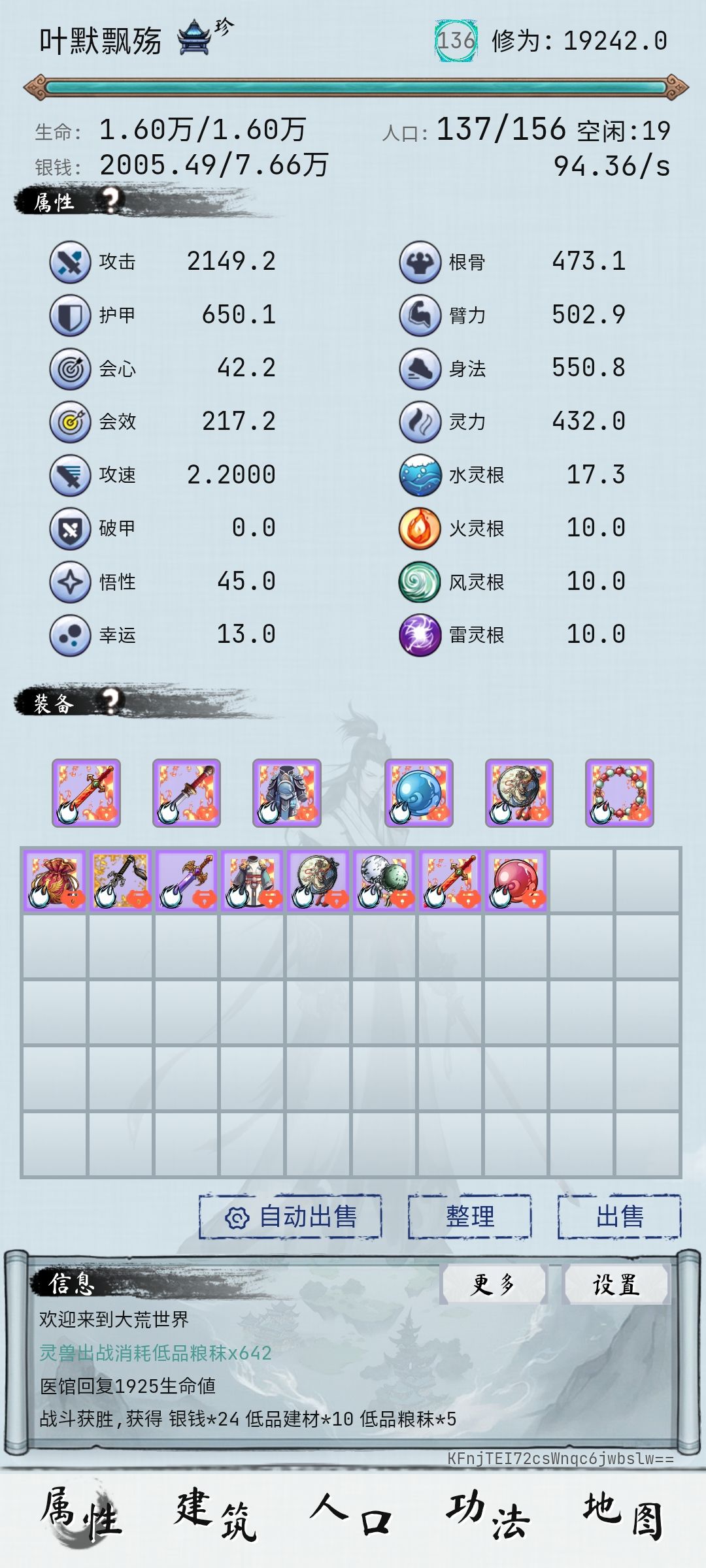 本帖为抛转引玉,你有别的思路以你为准 以下攻略大致需要50转,且至少有一个风点,不够的达不到这种效率,建议刷2-9。 不用解锁任何建筑和装备,至少点满一个灵根,建议火灵根。 最终标准装备: 5级中八阶青萍剑+5级中八阶紫霄+空明袍+灵风+明象+流景,往生咒吞10灵根对应的属性珠和噬魂刀,修为大概在220,耗时大概60-80分钟,当然,运气好运气差影响很大。 标准属性: 120+攻击,1050左