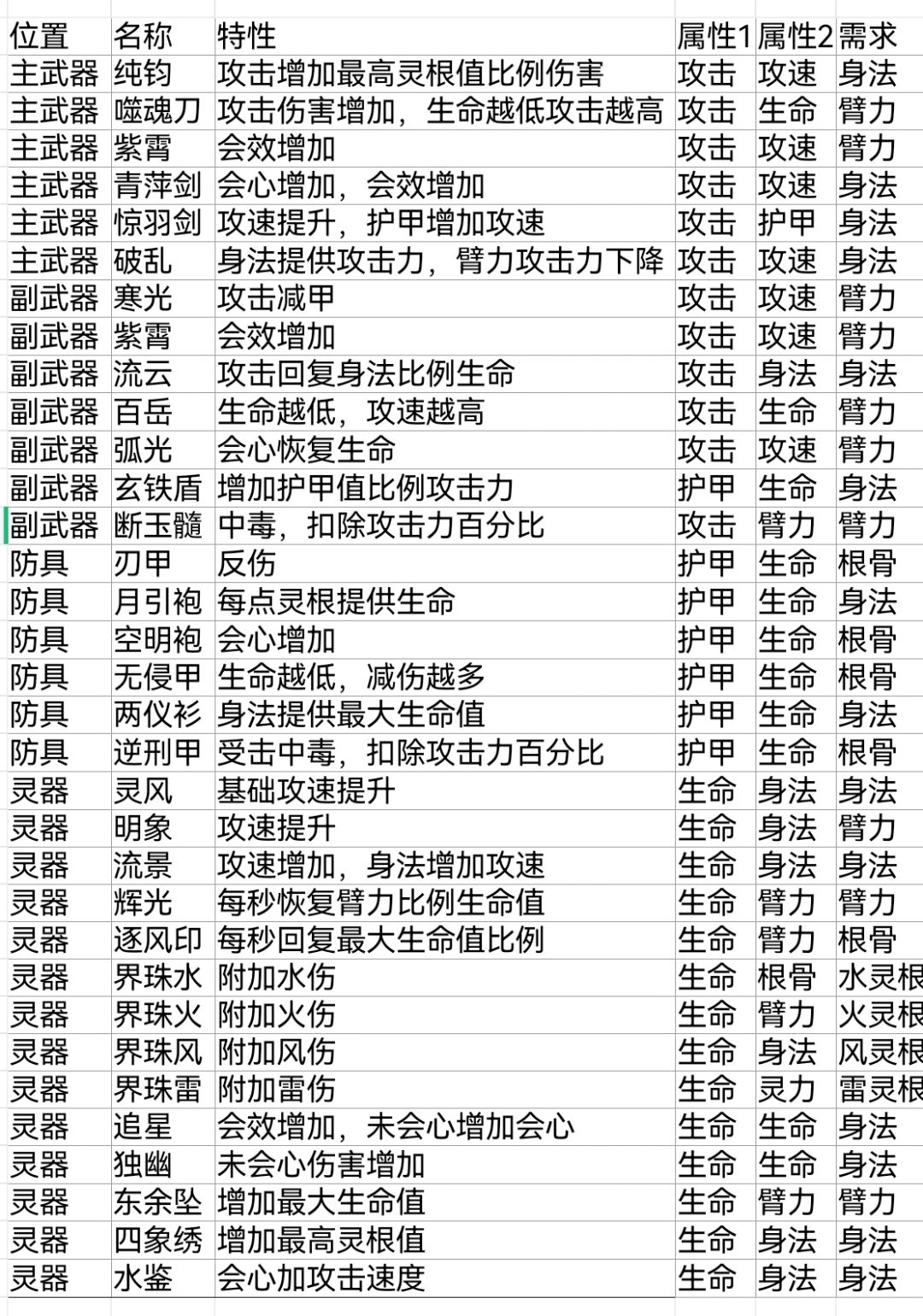 整理了装备情况,给打算搭配流派的兄弟参考#大荒几许 一下