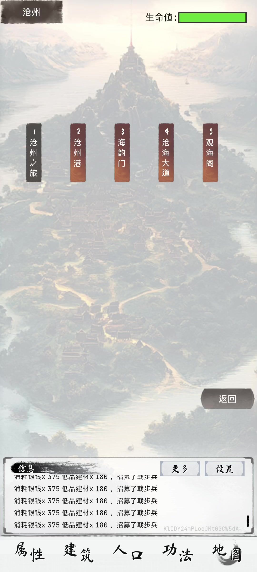 祭天选择的是攻击与回复 副武器带着暴击回血 攻击速度2.2,往生吞每次攻击增加4.5暴击与每次攻击附加2%毒伤,叠的非常快,刀刀暴击且3000血量情况下每秒攻击2次回血量高达100+,想想看,你强化15血量加多少修为,这战斗力回复的血量能提高多少看不到的修为 因为没有vip资源被限制,只能带11中和1民兵1弓 其他建筑强化目前能满的都满了 转生里的属性,15绿点,三围只+5,基础属性基本上都满,没