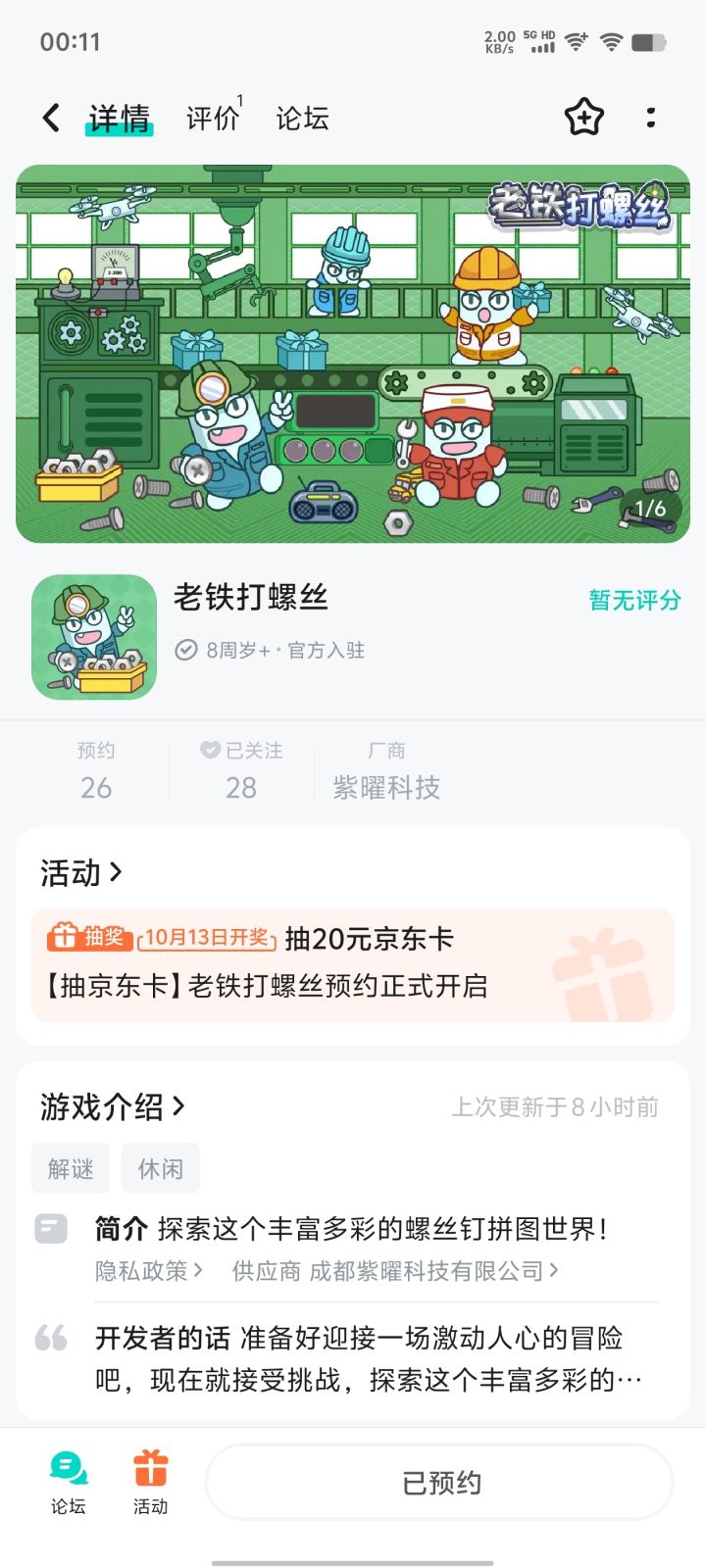 看描述是经典的打螺丝玩法,在抖音和微信有玩过,taptap上还是很少有打螺丝,期待一下。