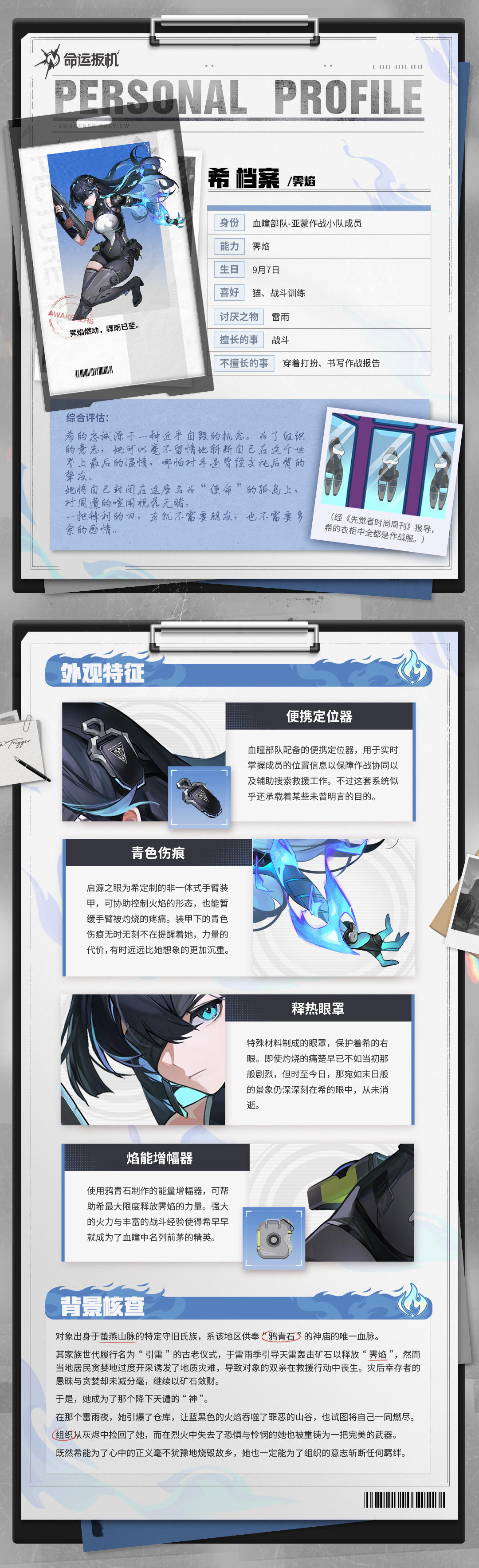 ▊权限验证通过,正在调阅【希】档案:希最后的温情,随着那场大火一起燃烧殆尽。如今的她,只会为了贯彻组织的意志,烧毁面前的一切阻碍。//更多内容需权限升级后查阅。点击放大图像,解锁完整档案页。*当前内容为开发中版本,请以正式版本为准。#命运扳机 #先觉者秘闻录 #希
