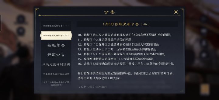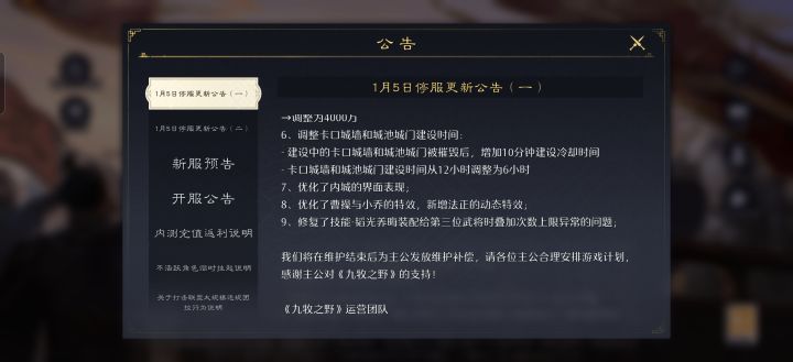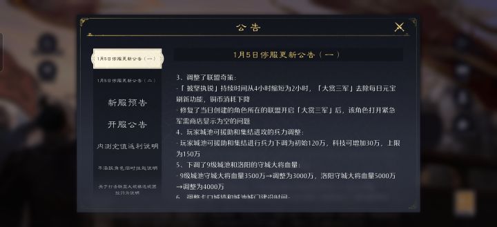 有些兄弟懒得看,我就翻出来到论坛,官方估计也是怕被喷帖子不发。至于为什么说怕被喷帖,我觉得一目了然,他更新了格调。也不是说没有作为,像野怪守军的技能强度下降,城池守军强度下降都挺好的。那么,为什么守军难度下降呢,因为人少的可怜,导致城池难打,那么人为什么少得可怜呢?不好说。