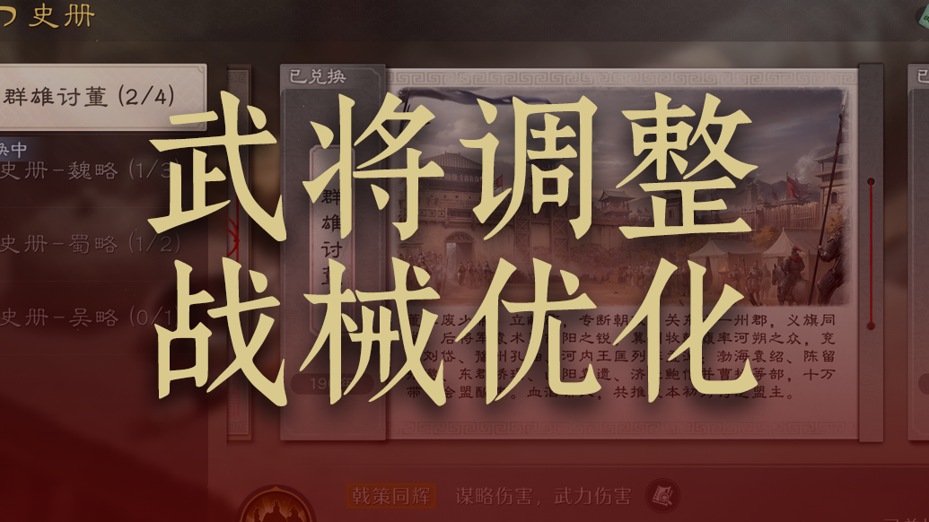 S2赛季姜维、陆逊调整,战械、联盟玩法优化。《九牧之野》S2赛季「摧城破阵」定档2月7日,全新武将、战械玩法即将登场。在S2赛季正式开启之前,我们已经在前瞻测试服中陆续放出了部分新内容,也收到了你在实战、讨论和线下试玩中给到的大量反馈。因此,我们计划在S2赛季正式上线前,进行一轮调整和优化。本次将会调整的具体内容如下:一、武将平衡性优化1、姜维:兵种适性优化枪兵适性:从A调整为S;弓