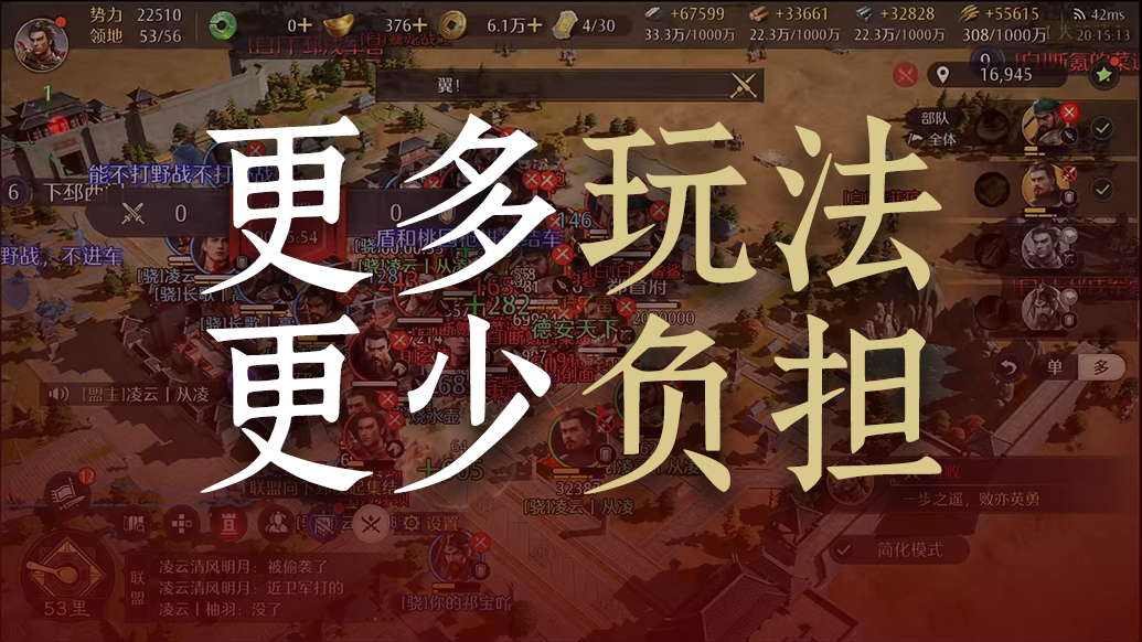 公测版本的《九牧之野》,会有更多联盟相关的新玩法和新优化,让你玩得更爽快!《九牧之野》的玩法设计核心,就是要让你玩得够爽!为了达成这一点,我们在联盟玩法和功能设计上也进行了大刀阔斧的优化——既要让你在战场上更能打,也要让你在管理上更轻松。今天,就系统地和你聊聊,我们如何把联盟玩法做得更能打。让联盟战场更能打!上头爽肝,就是要让你更早、更痛快地参与联盟战役,享受爽快的战斗投入真正的大场面。