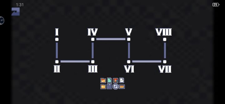 小体量的一款游戏,玩家通过控制分辨率来通过关卡,解密要求少,会有一点操作需求,但要求也不是很高,失误几次就能过。平时用4像素,获取物品和观察环境用16像素,2像素无敌模式(顺便把空中平台也给屏蔽了。)