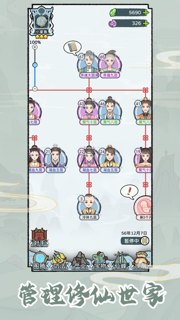 这是一款在修仙世界中管理经营某世家的模拟游戏,上至家族的发展方向,下至日常琐事,都跟你的操作相关......同时整个修仙世家的发展进程也充满了开放性和随机性,比如你可以偏袒家族内喜欢的成员给予其最好的修炼资源和功法支持,比如你可以让家族成员主经商弱修炼,又比如你可以插手干预家族内成员的姻缘等等,当然如果你是佛系选手那也可以当甩手掌柜。除此之外,像家族功法的获取和传承,像宝物神器的奖惩分配,像仙峰资源的修炼名额,像家族产业的拓展管理,又像家族成员的历练成长等诸多事宜都将与你息息相关。加油!相信在发...