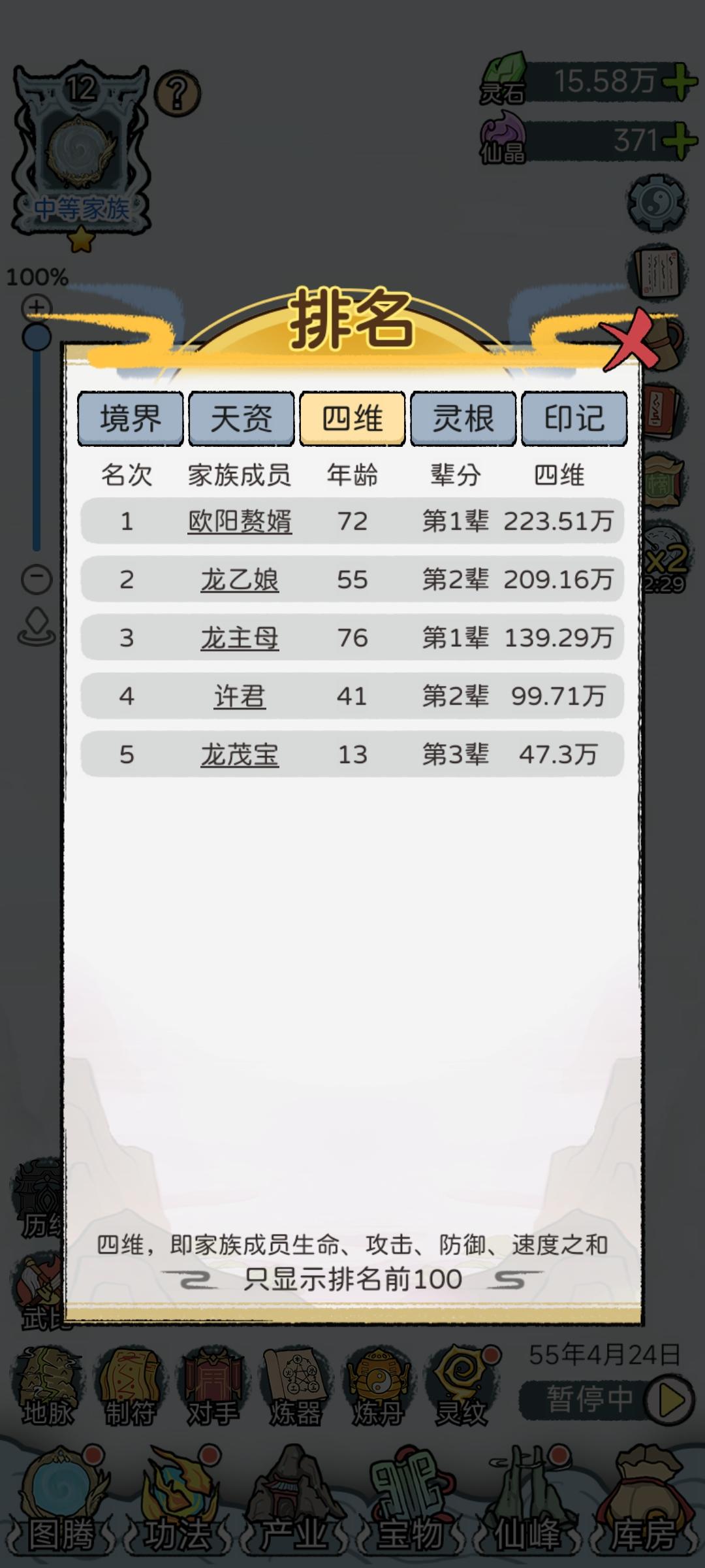 觉得这游戏的话需要很长一段时间,然后你玩的久的话,他后面子孙的话,他会直接拥有原产的,然后只从后面还会有后代,后代后面还会再生出小孩,生出小孩,然后直接进行家族传承的一代血脉。然后直接夹住的话,你后面有人的话还可以直接进行。家族等级的升级等方面的全方面的提升。