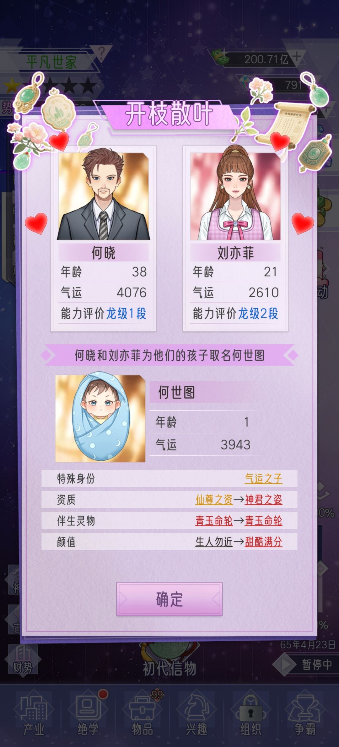 3岁化气 4岁凝元 5岁道基 这就是个拼爹的年代 爷爷出生在社会规则还没被确定好的混乱的年代,卷了一辈子的爷爷在修仙界闯出了一片天,奠定了自己的家族在修仙界的绝对地位,年轻时候没空谈情说爱,年纪过百才迎娶了自己的终身伴侣并成功诞下三位天纵奇才的孩子继承家业。 父亲一辈人在出生的时候便是掌握着这片修仙界的话语权,但是他们并没有因此而不思进取。继承了老父亲的意志,父亲兄弟姐妹3人同样卷了一辈子,把整个