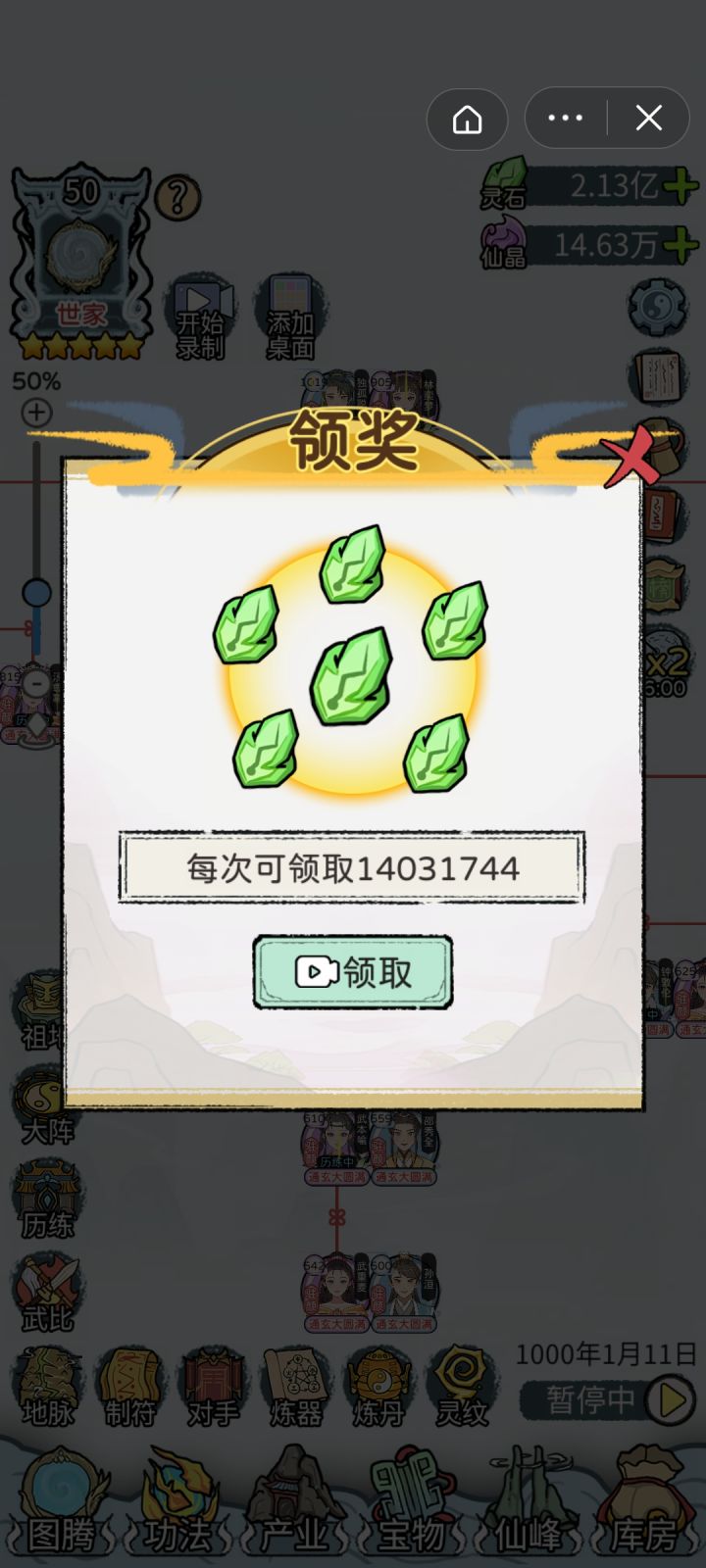 千年修仙不朽世家,1000年202位通玄大圆满