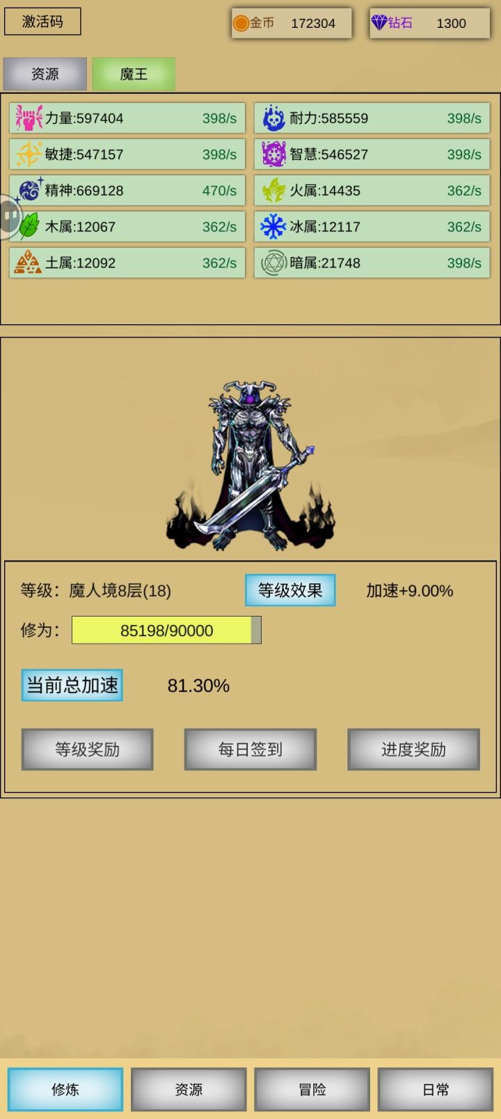 这游戏只是单纯的为了挂机而挂机,获取的资源没有目标性,且资源类目超级多,然而没有一个对于游戏最终要达成的目标起到作用,因为没有目标,没有压力,纯粹为了拉高数值而已,游戏可玩性,不超过一天