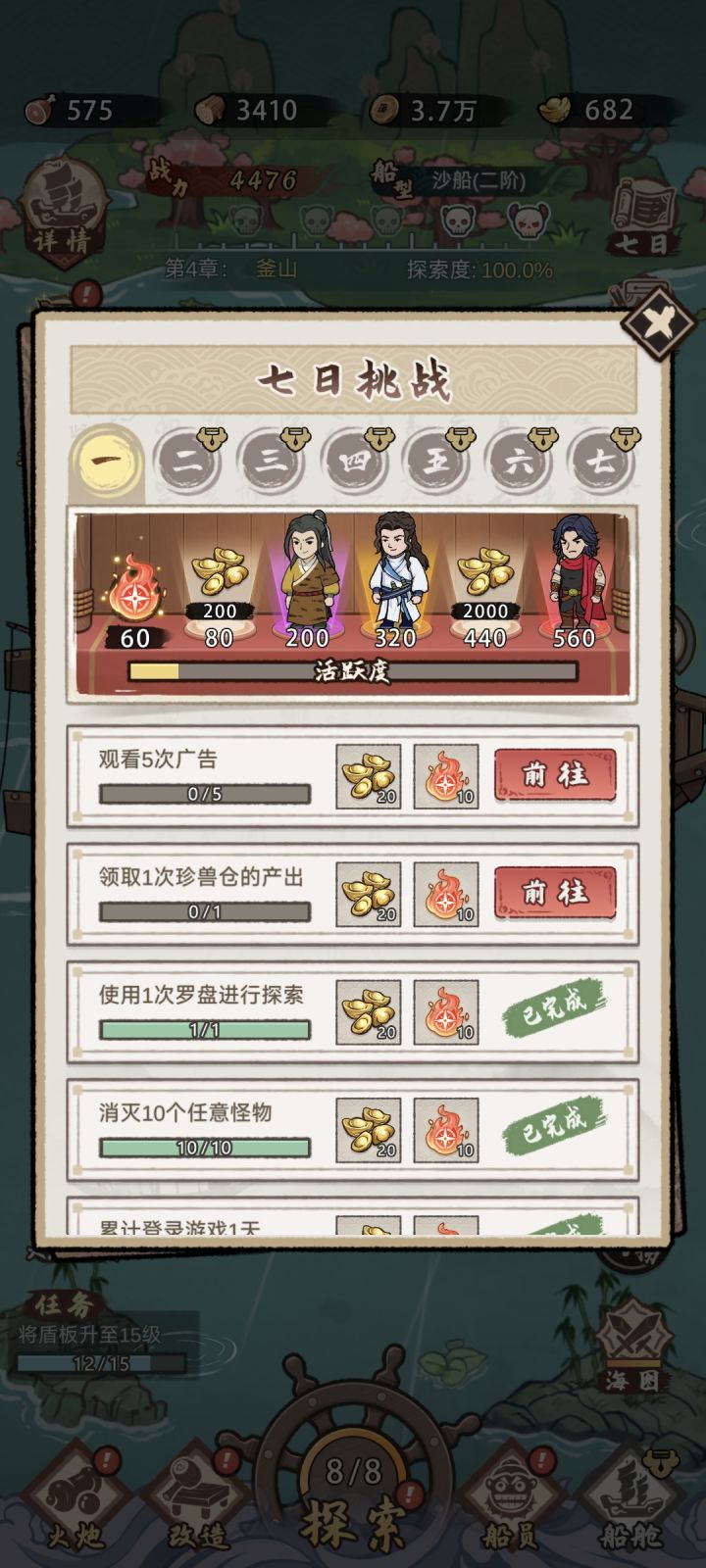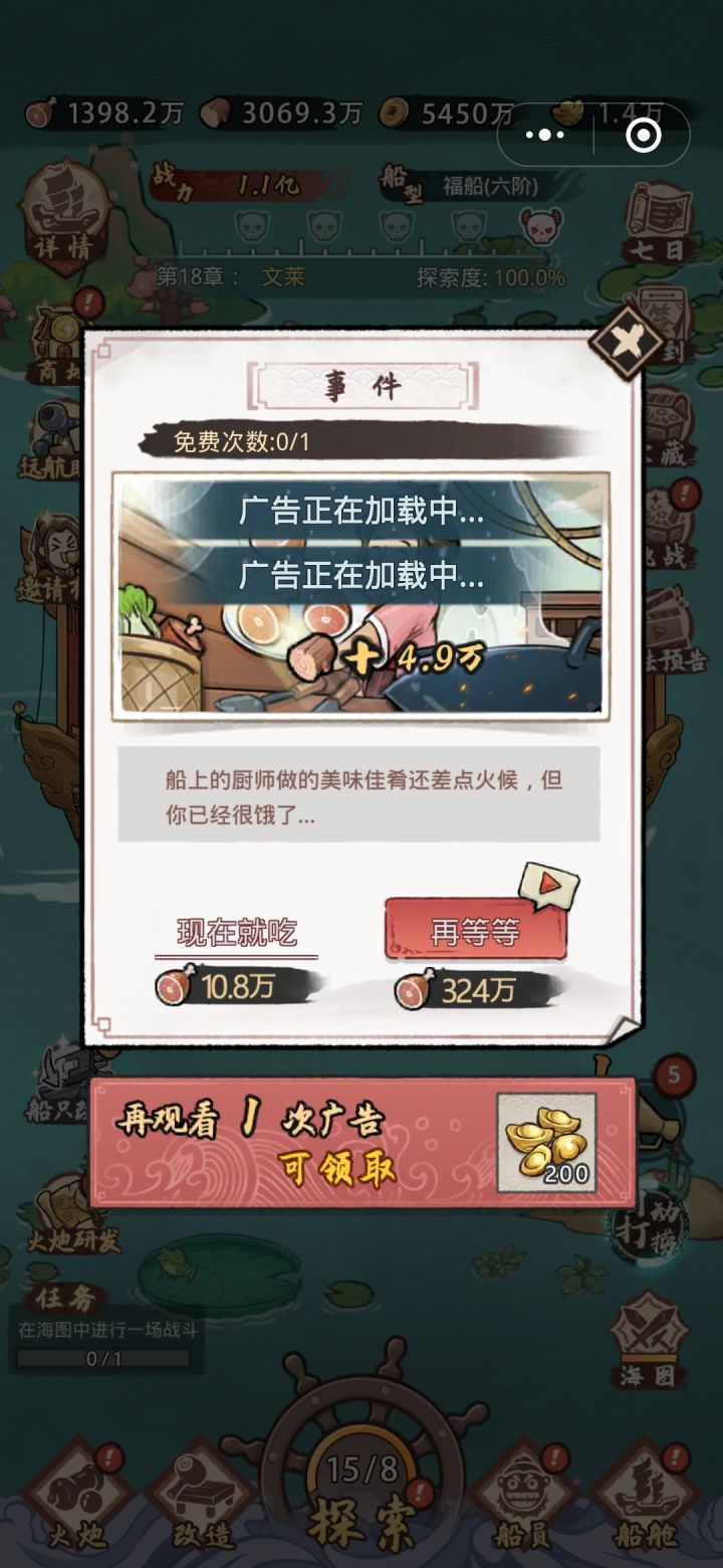 第八章开始,强迫开广告。也就是说船只升满级、大炮升满级依旧推不了关卡