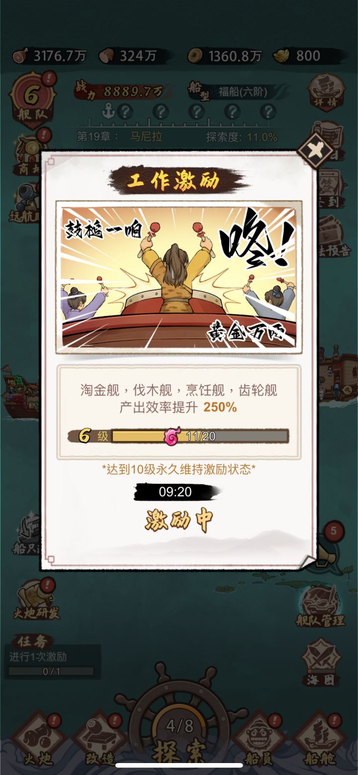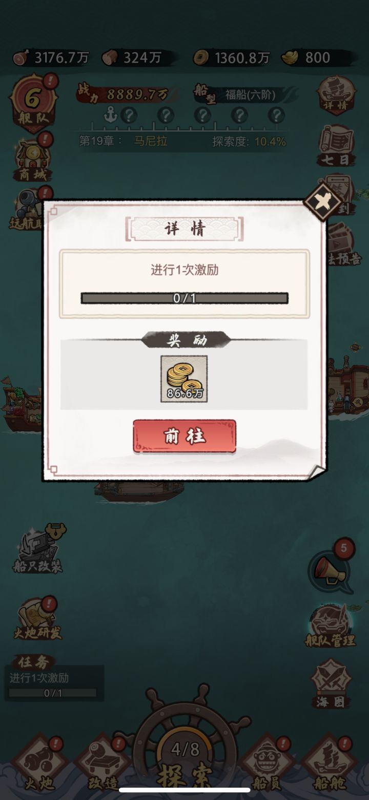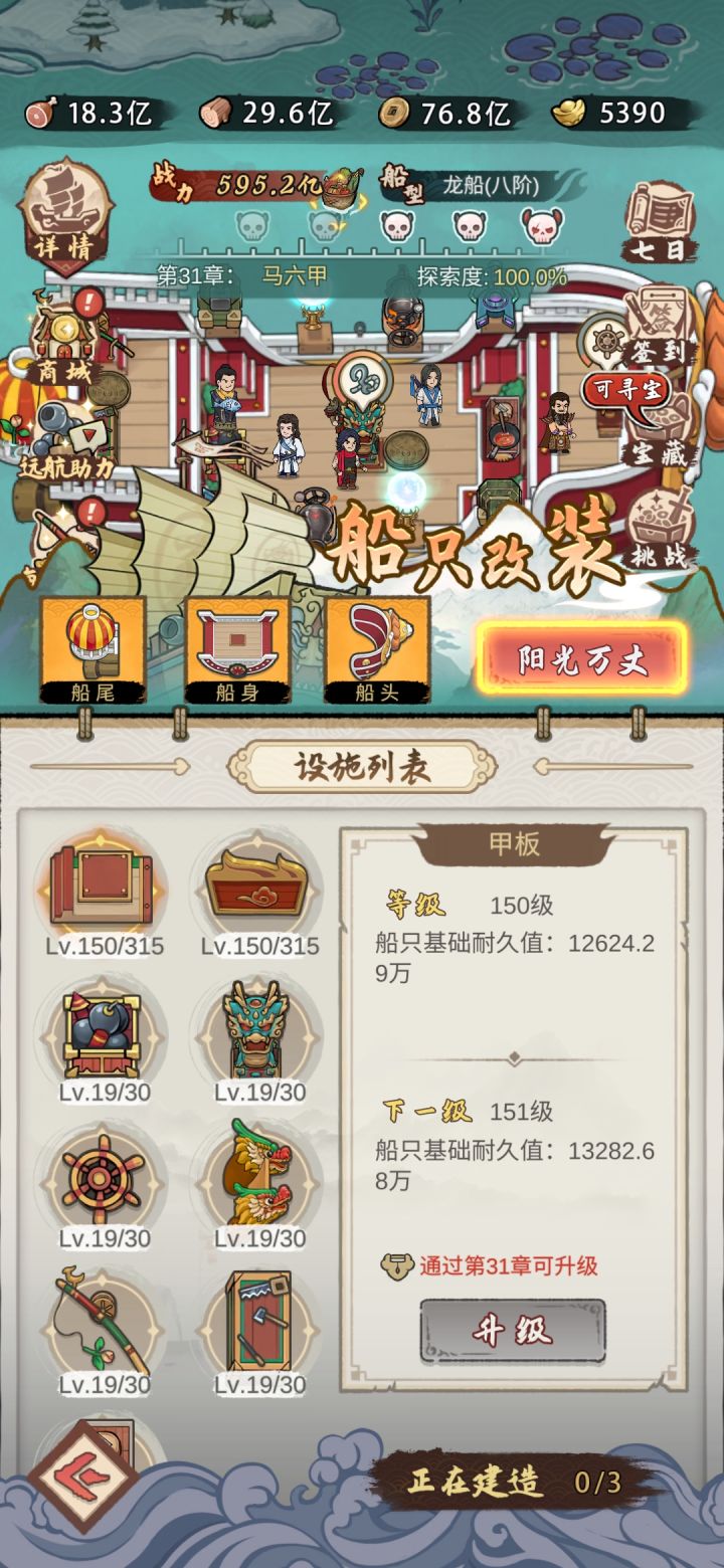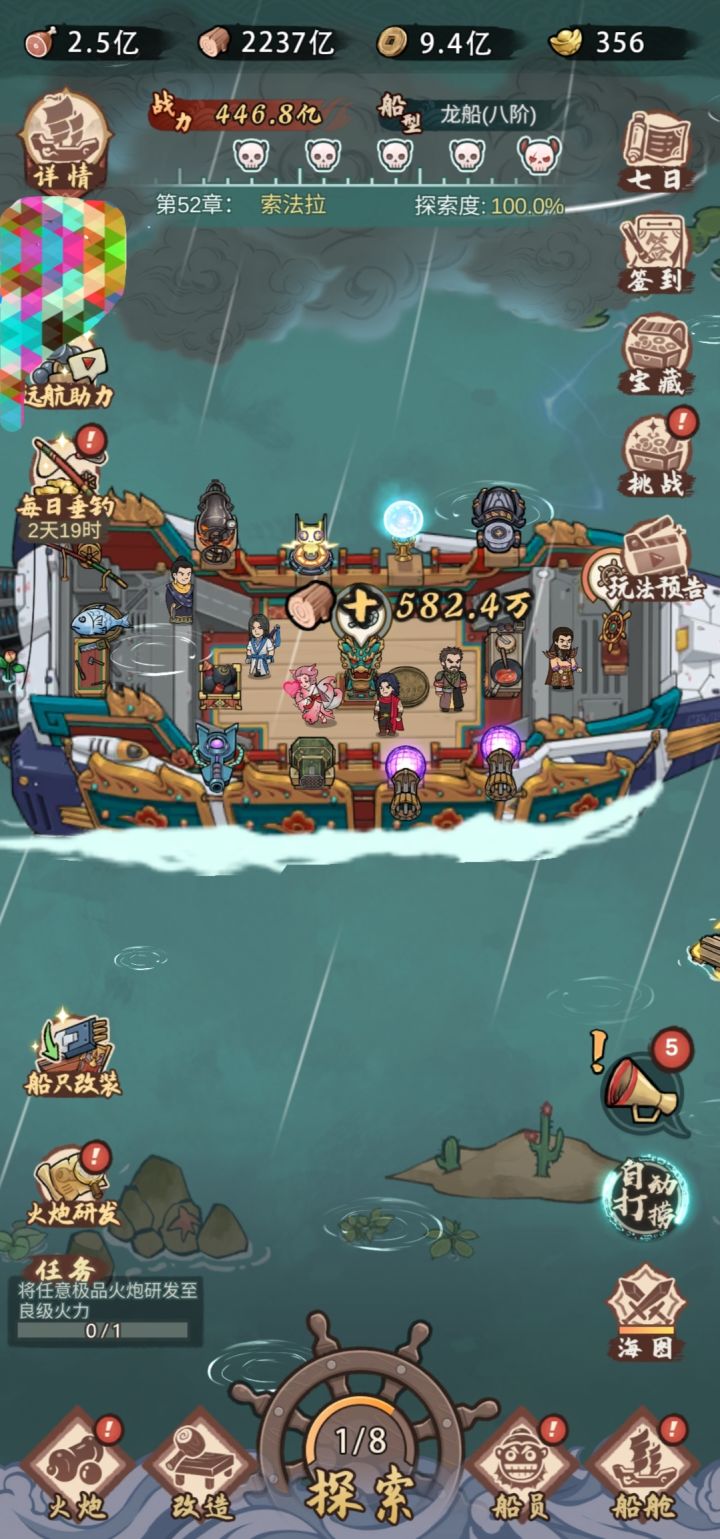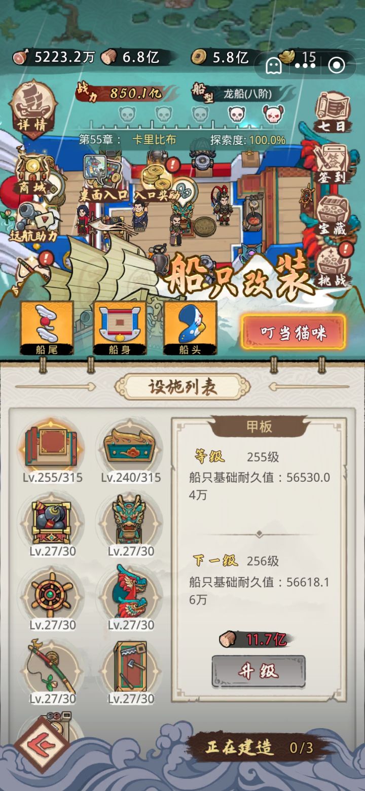 前前后后玩了一周吧。还差9关就打完了,后面没用新内容了,无非就是接着提升人物、船、武器,战力提上去就通关了。打到55关,一个小关提100亿,55-1才870亿,55-4就1170亿了。这个游戏不需要看广告,我一次广告也没看。有bug,可以快速刷资源,但是后面没啥新东西了,懒得刷了