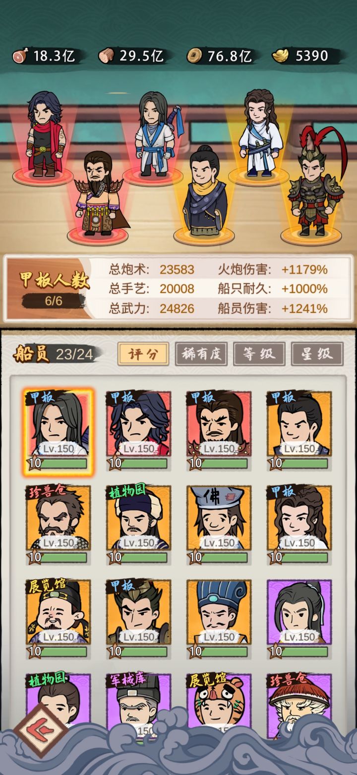 甲板最强船员阵容(星满级需要59碎片)雄帮主:特技最强aoe云堂主:特技最强自带跟踪aoe风堂主:特技最强单侧aoe李探花:最强被动特技CD时间减少40%乔帮主:最强被动特技暴击伤害增加100%济公:最强辅助特技3秒船体免疫所有伤害并恢复少量耐久温馨提示:碎片优先兑换济公>乔帮主>李探花>云堂主>雄帮主>云堂主————最强火炮配置针对BOSS战(皆为极品火力上限)上排:喀秋莎丨
