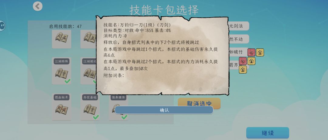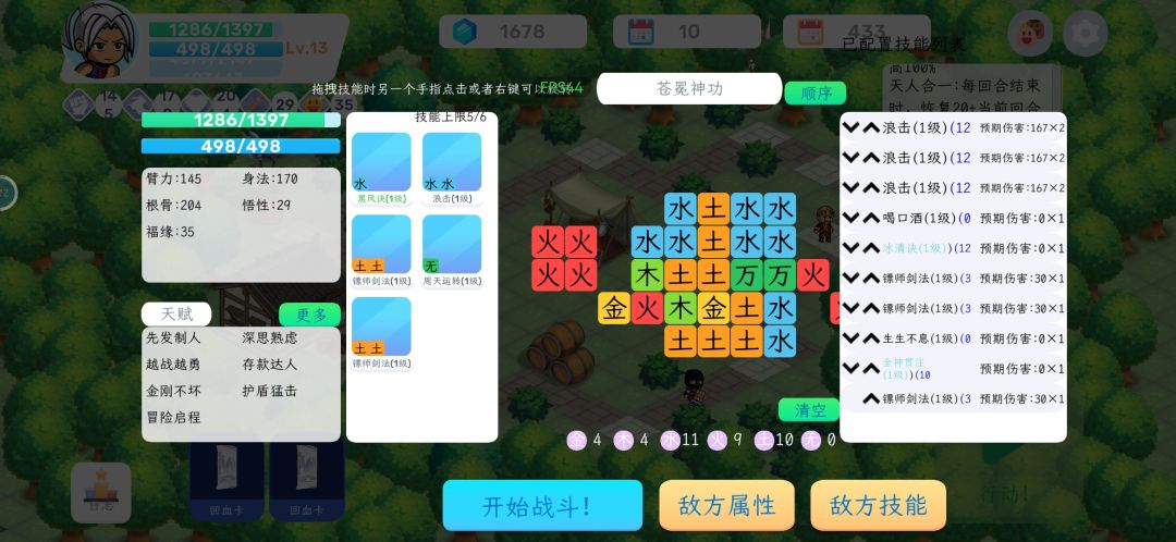三个挑战模式已经拿下! 开始确实很难打,只能不断试错,把传承点打到6就好很多了,除了开始那几把,后面传承点直接爆涨,6点18点过了以后直接就76点了,开局内力恢复非常少,我都是点的特殊启蒙,选的内力恢复,加盾,再加上刀剑天才补个伤害技能,有这两个传承后天赋异禀必拿,刷个越战越勇出来,搭配浪击刷臂力,镖师剑法出伤害,图二最左边那四个是两个斜的火,只要出招就加臂力,两个一次加6点主要怕和其它格子挨着内