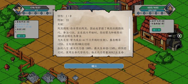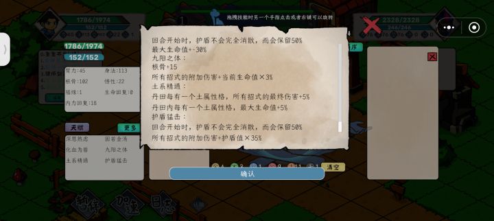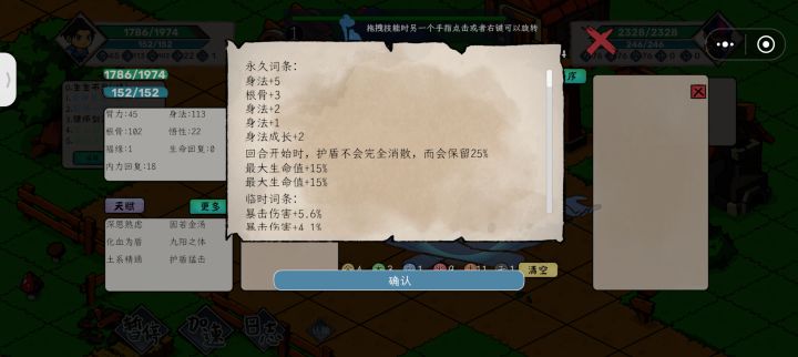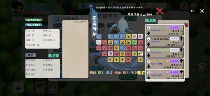 2级,先发/不屈,主点身法,福源4级,血海魔功(核心)6级,护盾猛击(核心)8级,真气护体(自行决定)8-10级,尽可能刷出事件逍遥子,接受扳指,刷出天赋神气普照功(护盾转生命)招式推荐:周天运转生生不息浮一大白全神贯注龟派气功活气术(重要,遇斧王可卸,防止数值爆炸,爆炸会强行认输)天工机匣!(可用来使浮一大白,龟派气功多次释放)小窍门:可将全神贯注先用复制卡复制,再用技