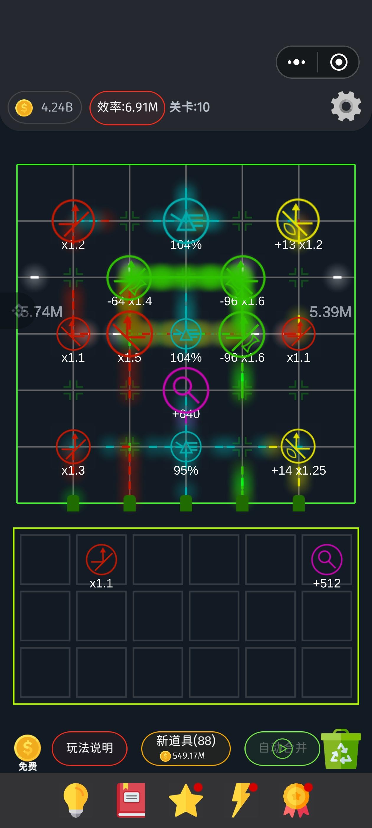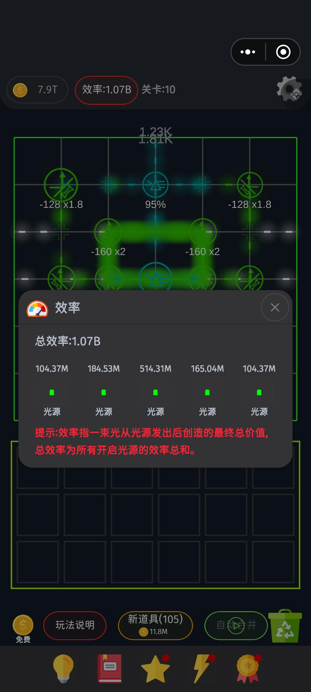 游戏中四个buff道具,分别增加基础光数值、光移动速度、光发射频率、光最终收获,但这四个道具有效期时间短,CD也并不算长。⏳