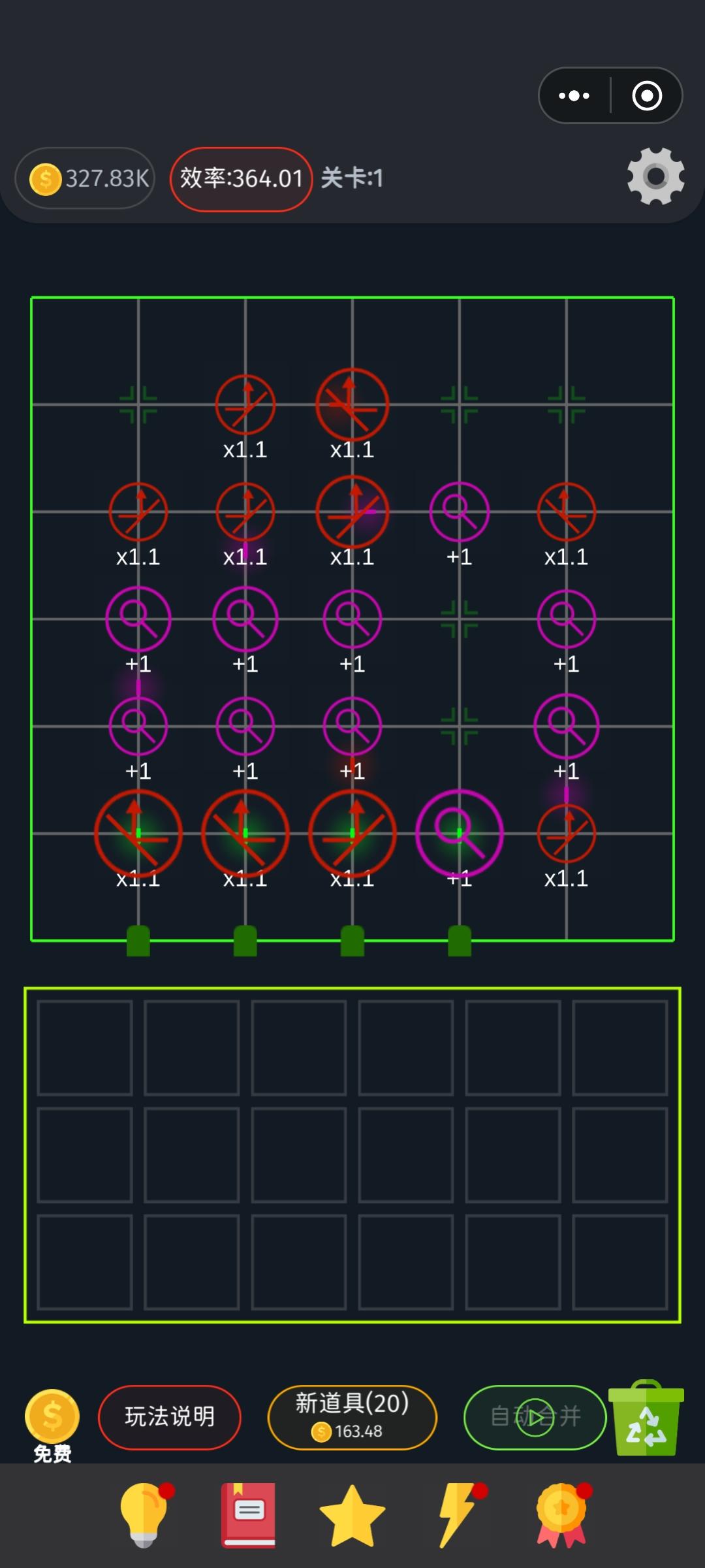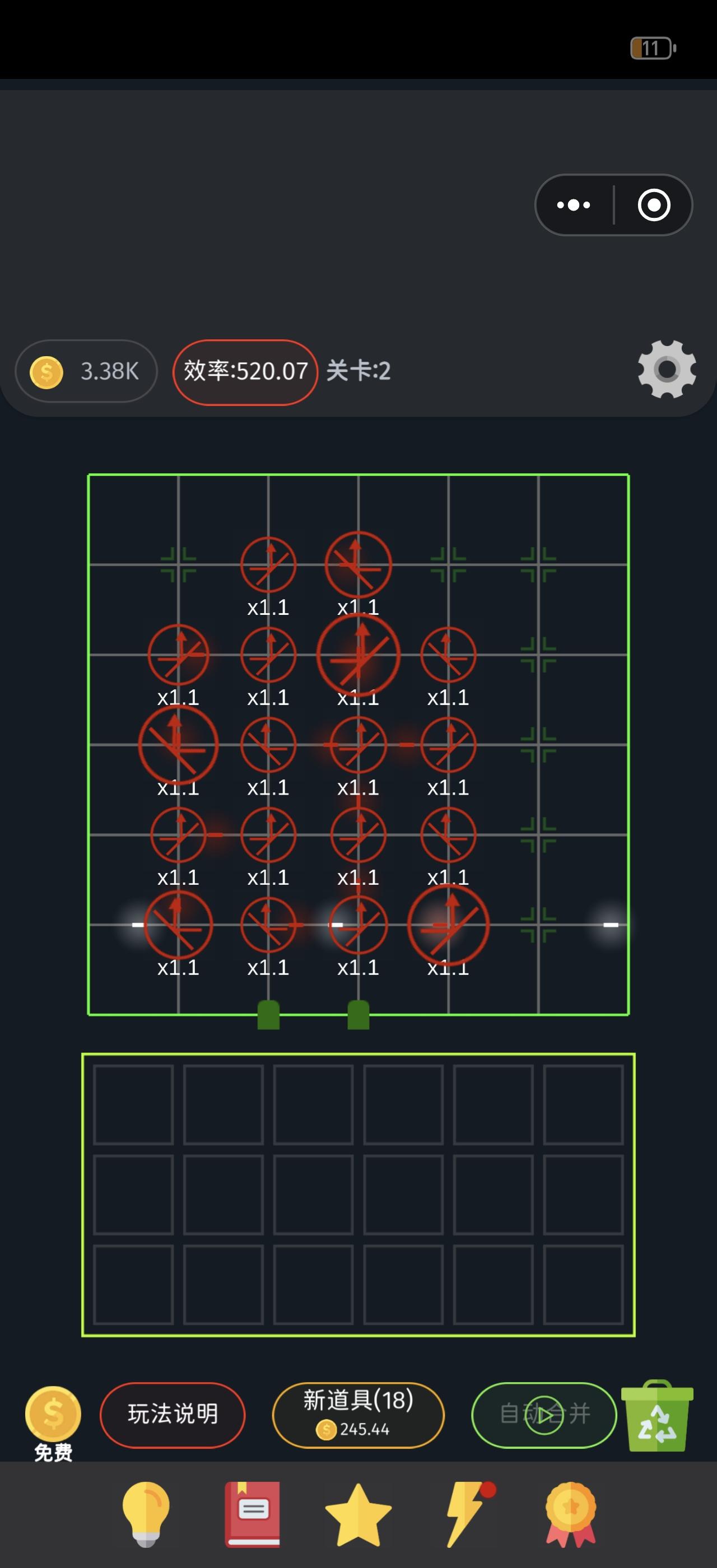 刚玩,还在第一关,说得不对敬请指正1、感觉光源升到2级就行了,多升级也没啥用,因为最多利用好两个光源;2、全部是1级反光镜、放大镜的情况下,感觉图二是倍率最高的,总共10个放大镜+10,还有10个反光镜倍率。但是光源数值总会升级,所以图二事实上还是鸡肋,建议用图一;3、图一由两个8字回环和外面的一个附件组成,总共18个原件,可以跑满25次。全是1.1反光镜的话,倍率是10.8倍。4、回环的