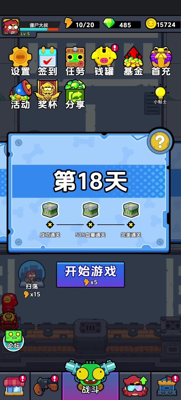 玩法和大多数竖屏肉鸽游戏差不多,看广告就可以拿到资源,每天限制50个,看100个就可以拿到免广告特权,还是蛮舒服的。 刚进游戏可以看20个广告选择一把橙色武器,推荐死星或者伊弗利特,前期武器和装备等级不需要提升,金币留着升级技能,突破材料优先突破武器,游戏内技能选择方面前中期个人认为灼烧弹>武器>冰弹>闪电链,40关开始会出地鼠,可以用3980钻石购买28关通关后的地雷陷阱礼包,可以稳过前几波,等