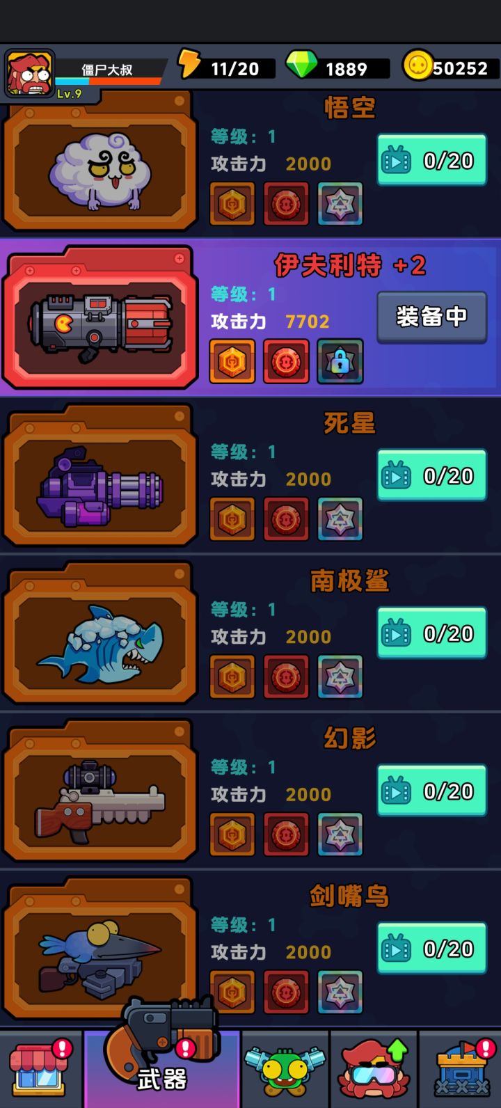 #差不多僵尸 #萌新攻略 首先每天只有50个广告必须花在刀刃上第一步也是最重要的武器伊夫利特花了20个广告解锁,可以用这把武器速推到39闭眼优先选主武器火箭弹,其它技能可以随便选(没有火箭弹只升一种技能就行)重要的事情说三遍,打完关卡有几率出橙色晶核,一定要留着三次看广告双倍,如果出了橙色晶核能变成两个还有30个广告就是小猪钱罐优先用,我第一天满了两次但是只能花10个广告还剩下20个广告