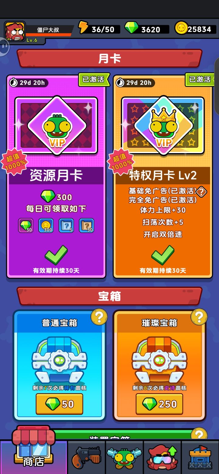 众所周知,这是一款众生平等游戏,也就是零氪手游(目前是,但后续就算开通充值盲猜也会很良心)但是,人家也要吃饭的,所以广告还是少不了,但一天最多看50个广告!又一个但是,广告有很多地方可以看,比如首充、签到、基金、月卡、宝箱、武器、体力等等。给萌新一些建议少走弯路!首先,说说特权月卡重要功能,免!广!告!开通特权月卡后可以免除大部分广告,包括上述的所