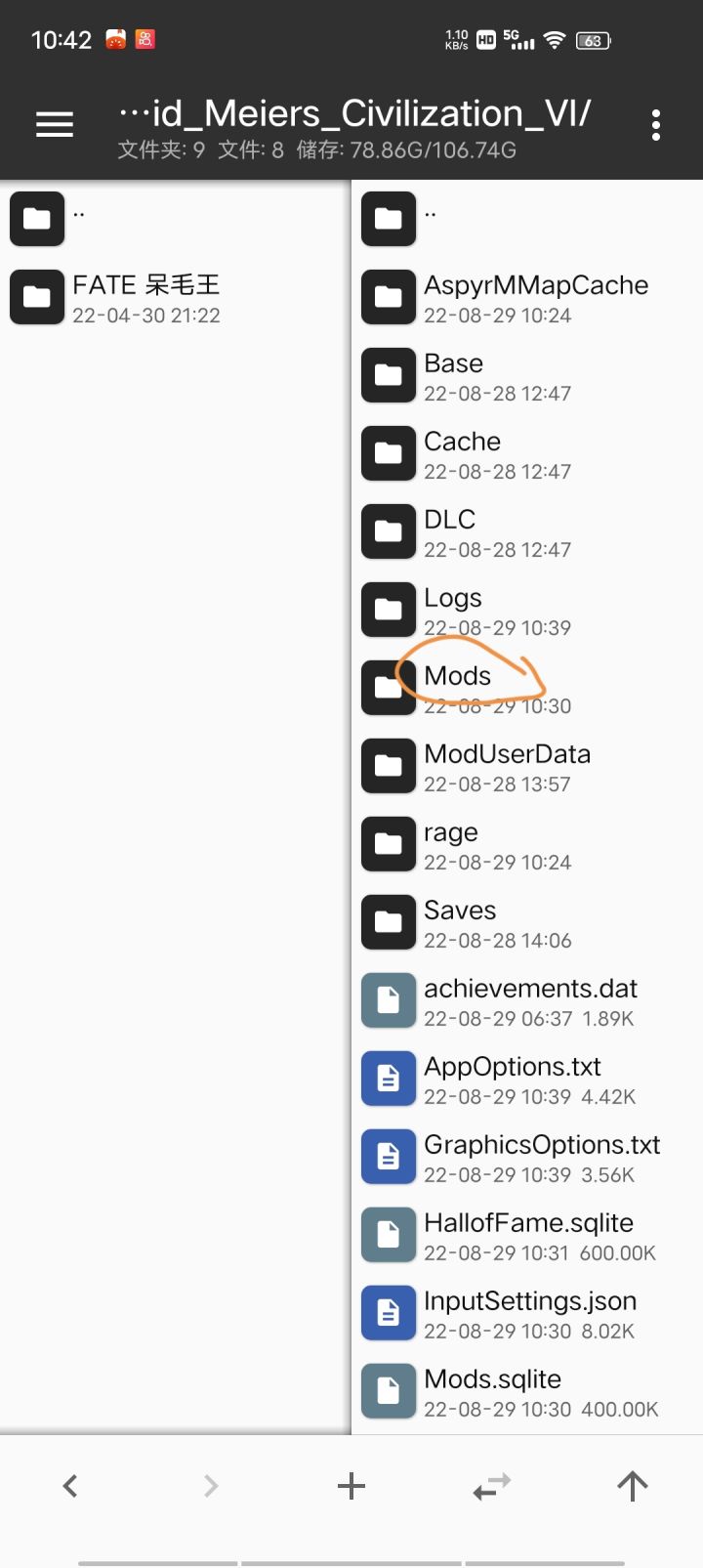 文明六如何加模组方法↓用MT管理器1先找到自己要加的模组2再点击右侧的Aadroid3点击data4点击带有文明六图标的com.aspyr.civvi文件5点击files6点击Sid_Meiers_Civilization_Vi7点击mods文件8然后再把自己的模组长按解压到右侧(安卓11以及安卓12需要先给管理器访问data权限)