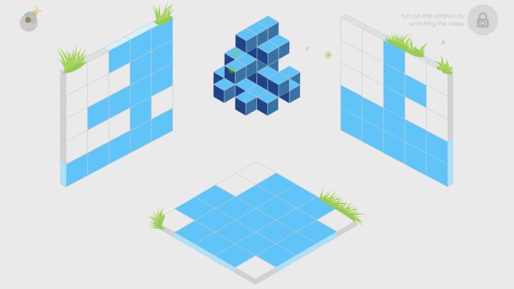 #游戏中给出一个用方块堆砌起来的物体,在对应的三个面里标示出这个物体的左右下面即可过关。
