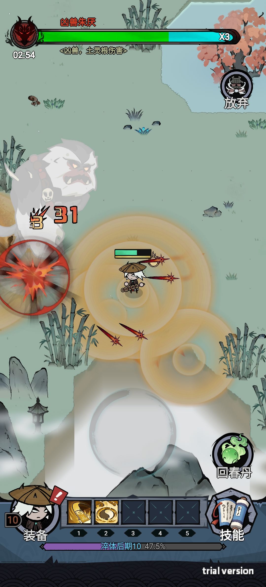 新手引导,跟着任务提示走。进入主城(平民村),安装好技能和装备,出发爬塔。 城里随机时间刷新奇遇任务,小世界副本根据当前最高层数分为,3倍,5倍,10倍,20倍,BOSS本(60秒内击杀,难度超模)。奇遇里有水池祈愿,神树祈福,给宝石碎片,强化碎片,灵石。 经过5天的测试,总结流派为,单破魔业火,分身破魔业火,护身破魔业火,单飞剑分身,飞剑分身护身,飞剑控神分身,飞剑天罡分身,冰爆控神天罡,冰