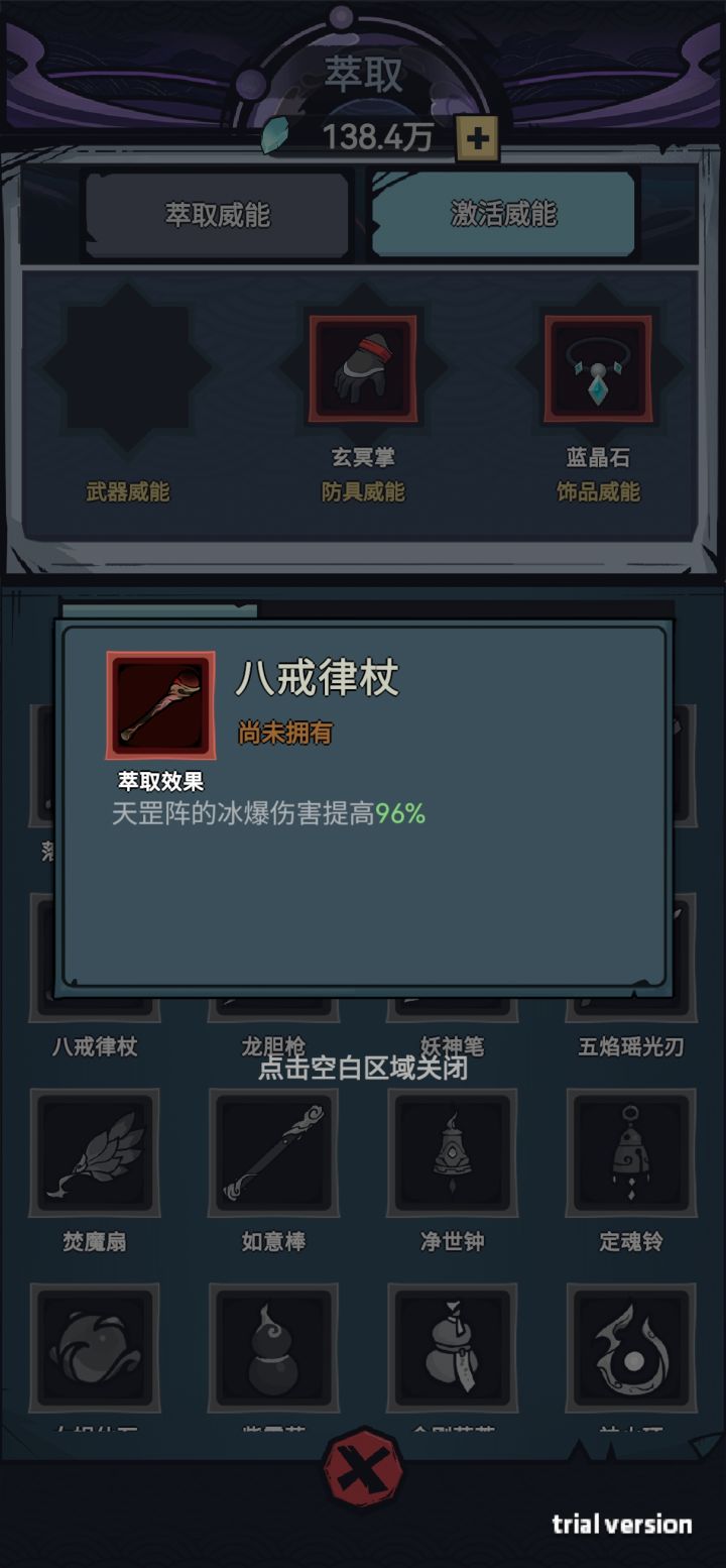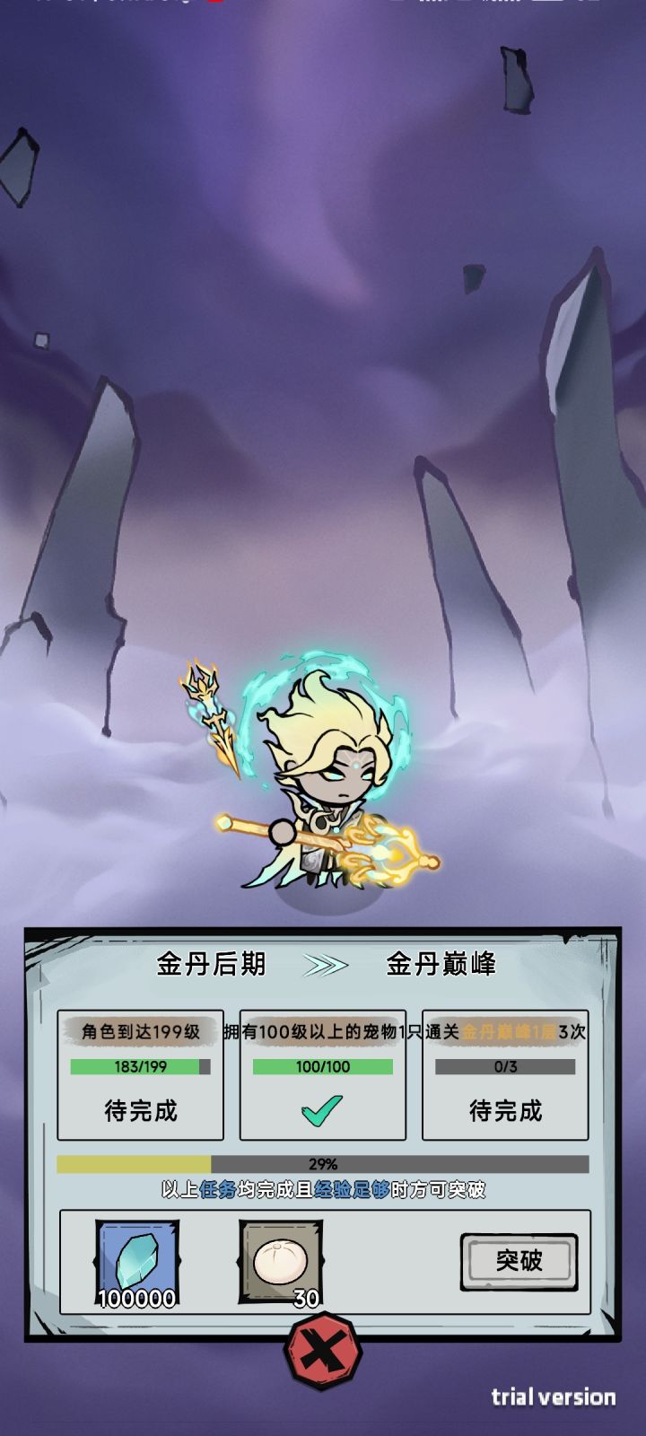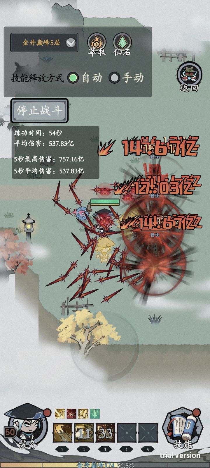 本次更新内容如下:本次更新调整:1.提高大乘期之前的装备爆率2.精英怪物技能叠毒buff的频率减慢3.优化技能释放索敌逻辑,主动技能会优先锁定怪物释放(视情况后续进一步优化)4.游戏节奏优化:筑基期之后的boss血量下调,金丹巅峰之后的击杀进度要求下调5.金箍灵宠叠层bug修复6.提升了部分法宝对技能的加成,希望让各种流派百花齐放7.多倍挑战倍率提升,次数提升8.其他一些偶发性B