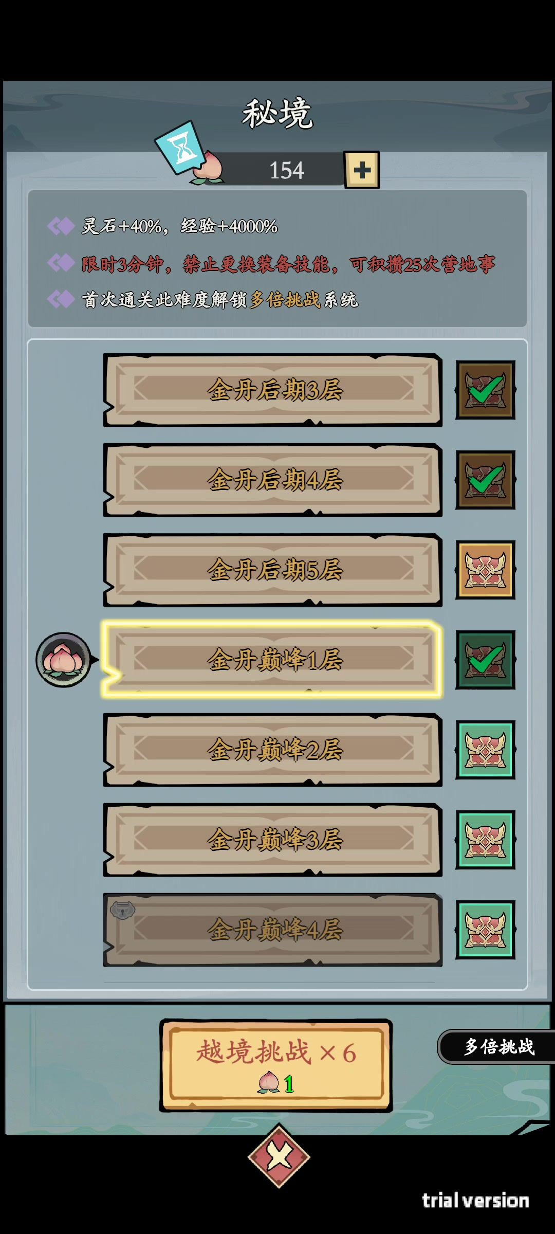 新手进游戏后根据剧情提示走,基本两小时就可以到金丹,打不过就多刷前几层,装备慢慢搞。到金丹就可以很轻松,多倍挑战打一次就行,多用合成(看脸的),萃取那里首选,冷却,破魔属性。