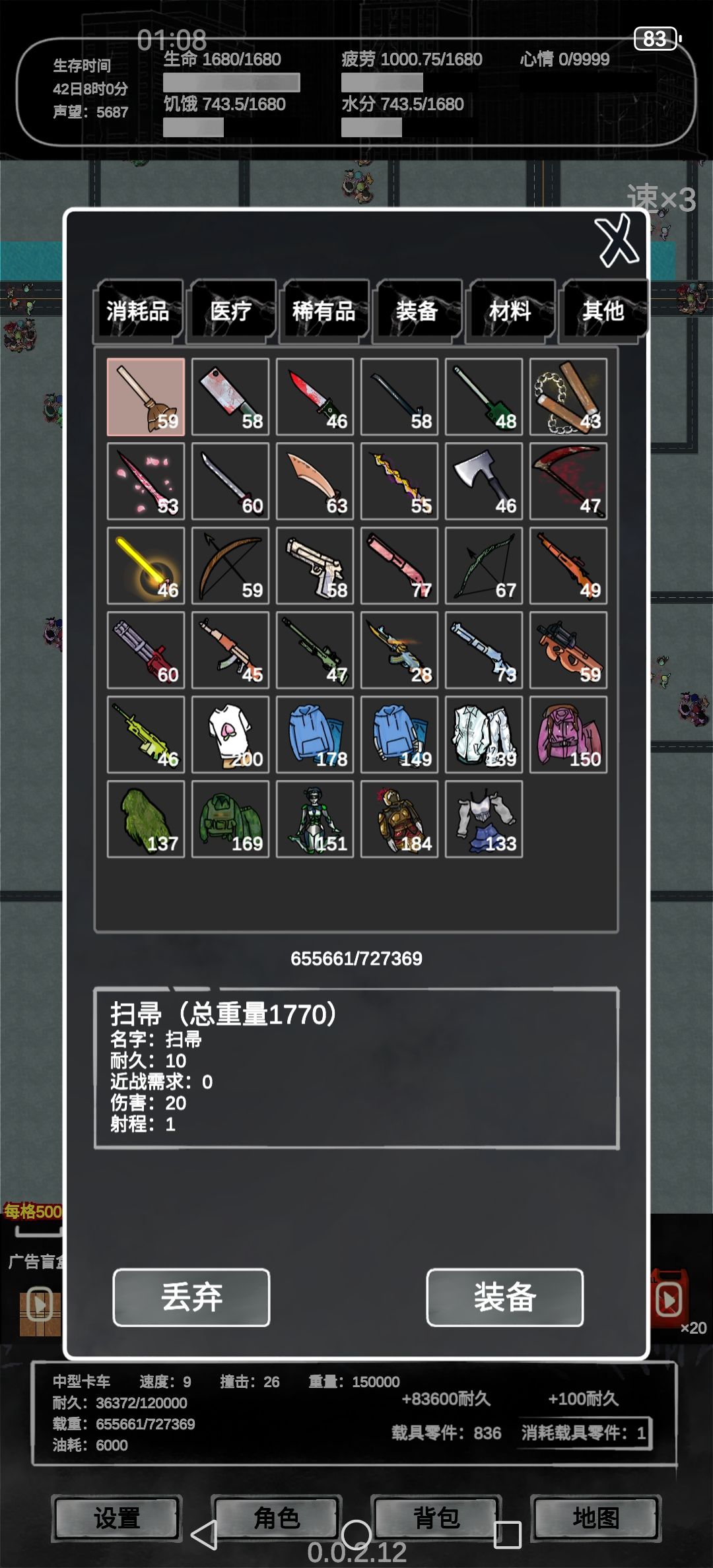 【条件:2.19版本,除了自动拾取和倍速不刷广告;不利用bug;不领取兑换码;不死npc】 【目标:天数90+开上毕业车(boss就作为彩蛋吧,不限定天数了)】 这个坑很可能填不上,总感觉105天左右是个坎儿