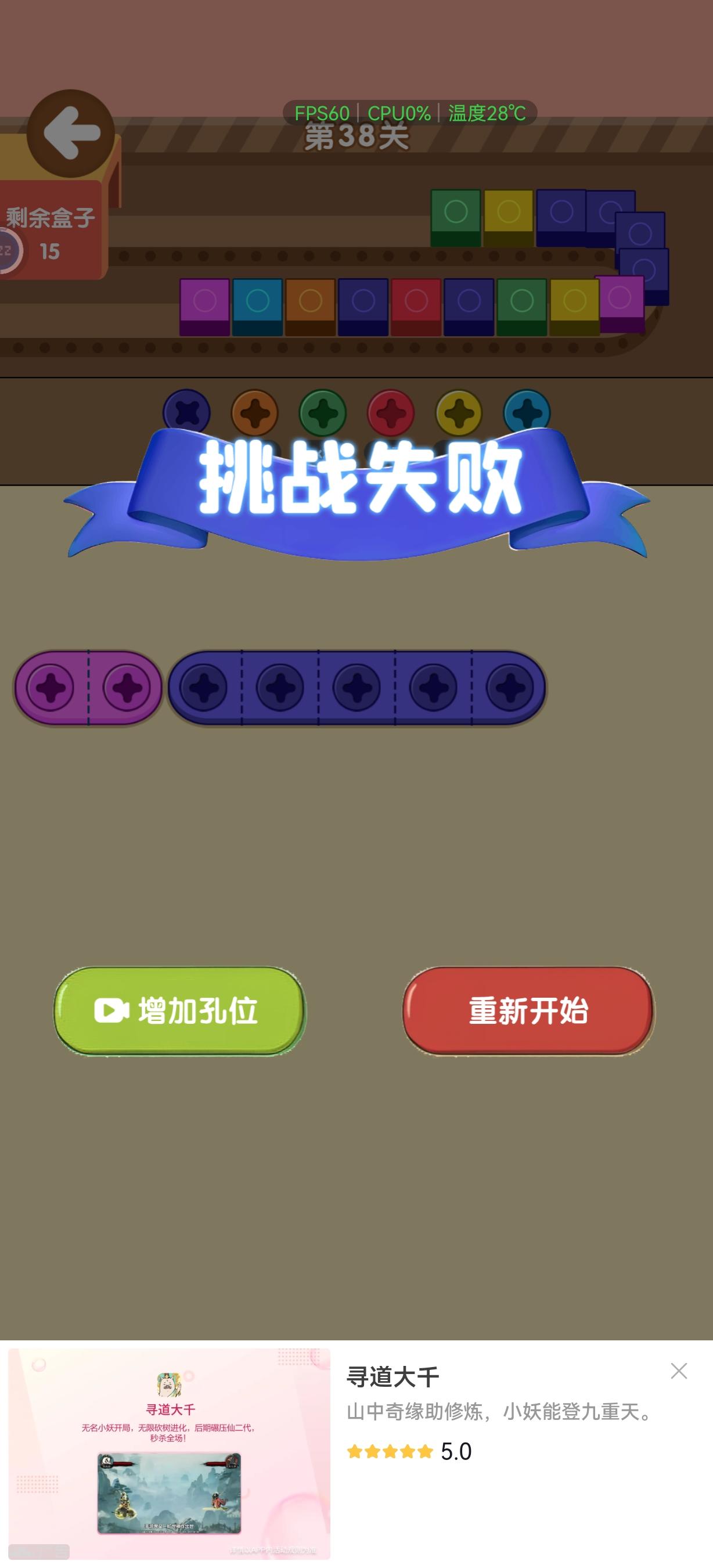还行,每关的螺丝基本都是固定的不存在不看广告过不去的情况,就是玩久了很无聊