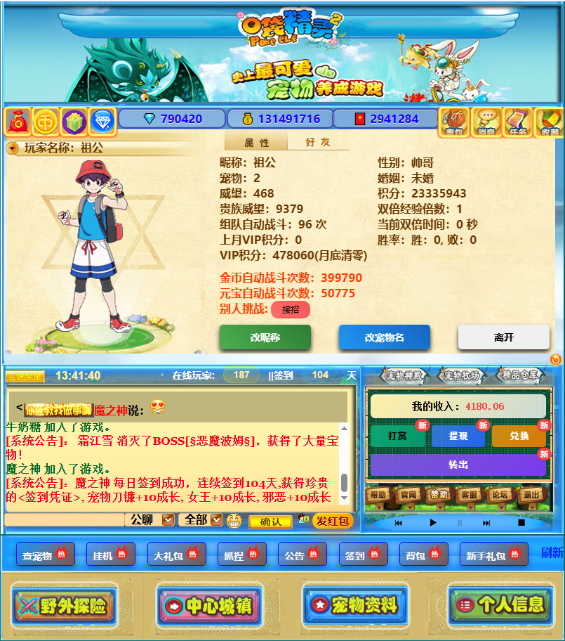 1. 每日发言即送大礼包,畅享游戏乐趣!2. 完成主线任务,直接飞升五万cc,实力飙升!3. 创新玩法,每日肉鸽活动,元宝道具等你拿!4. 丰富的日常假期活动,助你登顶巅峰!5. 群主不定期红包雨,节日礼品惊喜不断!🎉【特色活动】🎉- 全服福利爆表,活动奖励丰富,现实礼物等你赢!- 宠物大放送,自带称号及专属装备,助你游戏发展!- 涅槃活动开启,丰厚成长奖励,全民共享!-独有的萌新cc补贴活动,助