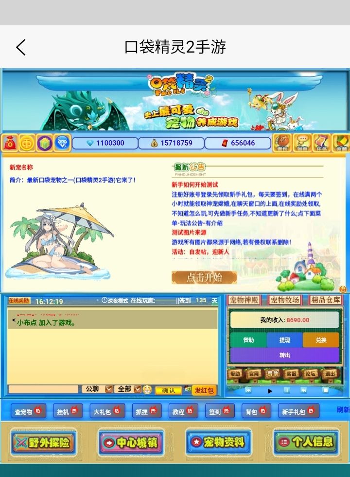 这是经典页游《口袋精灵2》的怀旧复刻界面,完美还原了当年的城镇主场景。画面中,牧场、仓库、皇宫、神秘商店等标志性建筑错落有致,熟悉的精灵球图标点缀其间,瞬间唤醒玩家的童年记忆。下方的聊天系统、功能按钮和经济系统(如“增加收入”“兑换元宝”),则展现了这款老游戏在社交与养成玩法上的独特魅力,让玩家仿佛再次踏入那个充满奇幻与冒险的精灵世界。