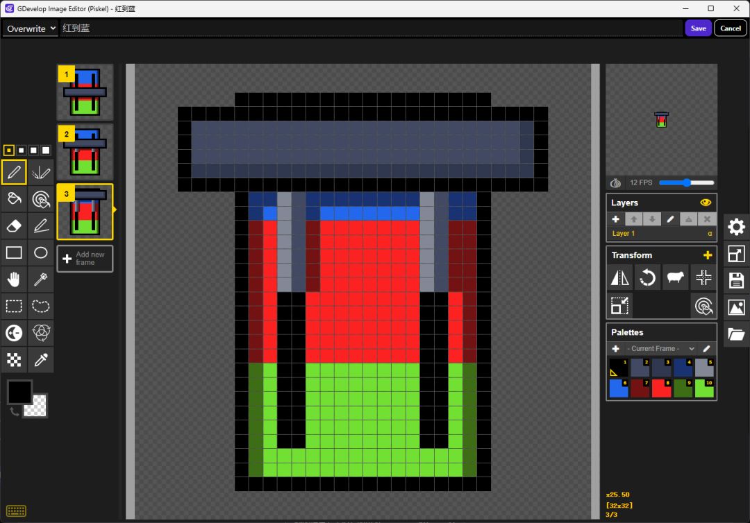 游戏添加了颜色切换机制,可以通过开关来控制激光通道的颜色。 目前游戏开发进度大概12%左右,敬请期待。。。 #聚光灯gamejam开发者日志 #开发日志 #聚光灯 #游戏开发
