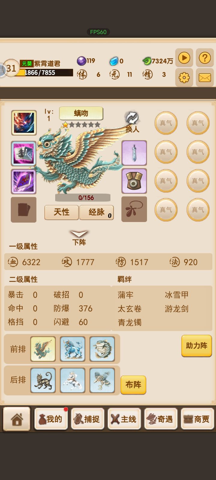 3、属性加点,前面说了培育丹是将进化值转化为属性的,那么如何分配属性加点,和如何合理的使用培育丹减少无用属性损耗。直接说结论,前排优先防御,后排根据属性,攻击宝堆攻击,法力宝堆法力。同时为了减少培育丹的无用损耗,建议用培育10次的档位,慢慢去堆相应属性,用一百次洗出无用属性很伤的,这是重点!!!