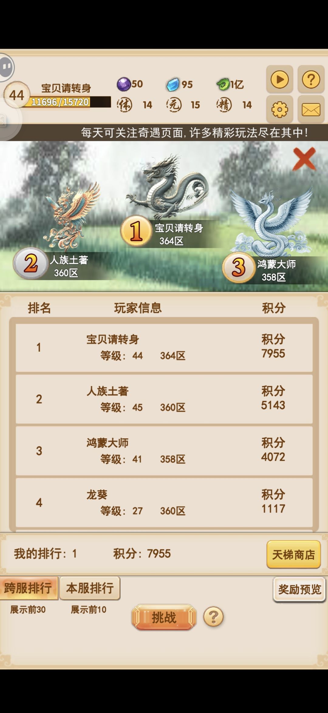 以此号为主,微氪,六天,佛系玩家 养成系游戏玩的是心态,没事点一点,有事看一看,缺点是周期长,优点是不占用大家太多时间,祝大家游戏愉快 升级目前主要围绕体力和元气 体力用于挑战副本,副本只要通关就会获得少量训练师经验以及神兽经验,三星通关会获得三倍训练师经验。 元气用于天梯挑战,仙法残章夺取,每次也会获得少量训练师经验。(天梯挑战到合适的排名即可,优先选择仙法残章获取) 资源获取 1广告 广告每天