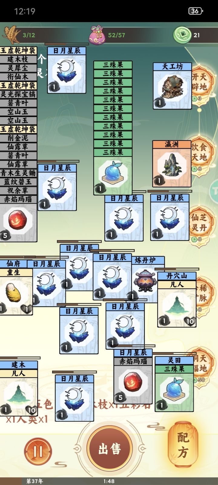 bug太多,有时候一年过得非常快,修仙者吃的果子也很多,但是面显示只要一个,还有过了一年啥都干不了了,我退了重进,修仙者没了,炼丹炉,天工坊都没了,只剩凡人了,赶紧修修吧