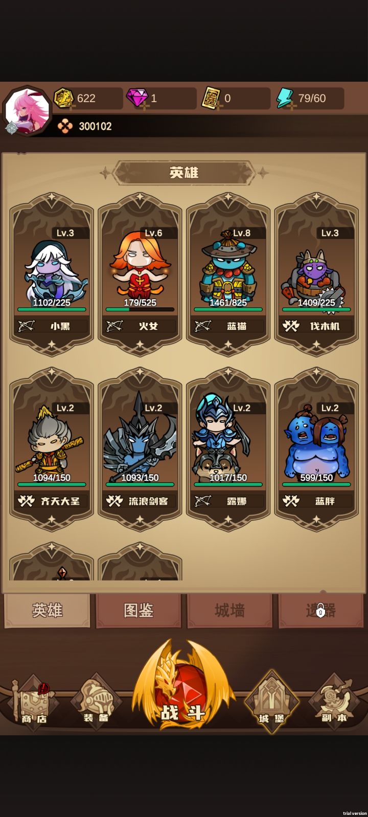 #游戏安利 氪金小月卡,为的就是免广告1资源分配四大核心资源碎片-升级英雄,没什么好多说钻石-活动任务获得,主要用来买遗物宝石-用任务给的钥匙开宝箱金币-游戏非常!非常!非常!缺金币,但是金币作用很大,能升级英雄(开新技能),能升级装备(加攻击)。这个游戏主要卡关点就是攻击,所以建议升级核心英雄,然后就升装备。核心英雄:1:蓝猫思路: 14级以后蓝猫自带60cd,拿人头后永久
