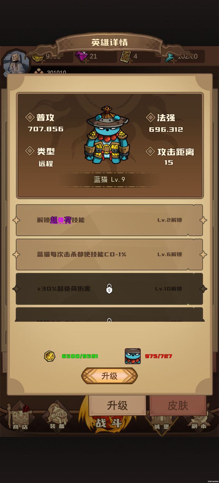 #游戏安利 氪金小月卡,为的就是免广告1资源分配四大核心资源碎片-升级英雄,没什么好多说钻石-活动任务获得,主要用来买遗物宝石-用任务给的钥匙开宝箱金币-游戏非常!非常!非常!缺金币,但是金币作用很大,能升级英雄(开新技能),能升级装备(加攻击)。这个游戏主要卡关点就是攻击,所以建议升级核心英雄,然后就升装备。核心英雄:1:蓝猫思路: 14级以后蓝猫自带60cd,拿人头后永久