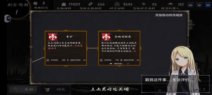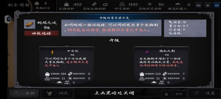 游戏是很好的游戏,可玩性很高,敲好玩。但是流程短。期待后续,不到一个小时四个结局全都打了出来,也点出来一次全科技树。前期和后期体验差异极大,前期很憋屈,各种资源都缺,纯折磨,和末世里的人感同身受的说。到了后期就视野最大过载全满乱杀了。把每条线的最终科技点出来就是无双割草了,也许可以优化一下游玩节奏。扩充一下内容后会是很好的游戏。