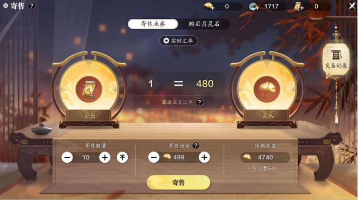 各位少侠大家好!随着新版本的开启,天刀的货币系统也进行了重大更新!出现了好几种新货币以及相关的寄售行功能,今天刀妹就着重给大家介绍一下寄售行功能。一、寄售行功能寄售行主要分为寄售点券,购买月灵石两大功能:“寄售点券”与“购买月灵石”。1、通过“寄售点券功能”,上架“点券” 成交后换得“金叶子”。2、通过“购买月灵石功能”,消耗“金叶子”按当前划算汇率直接购得“月灵石” 注意:(1)出价