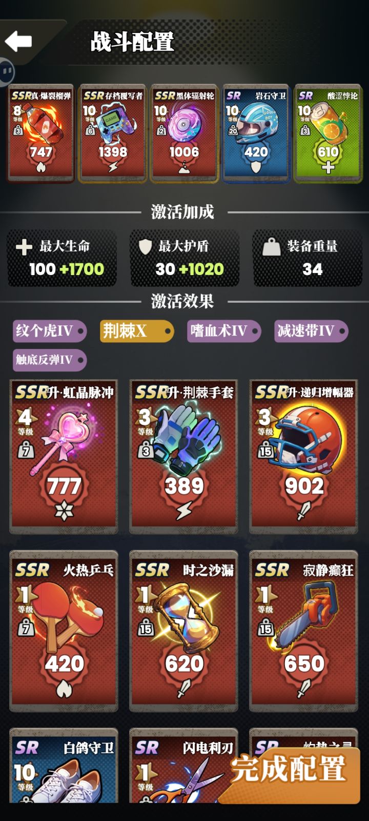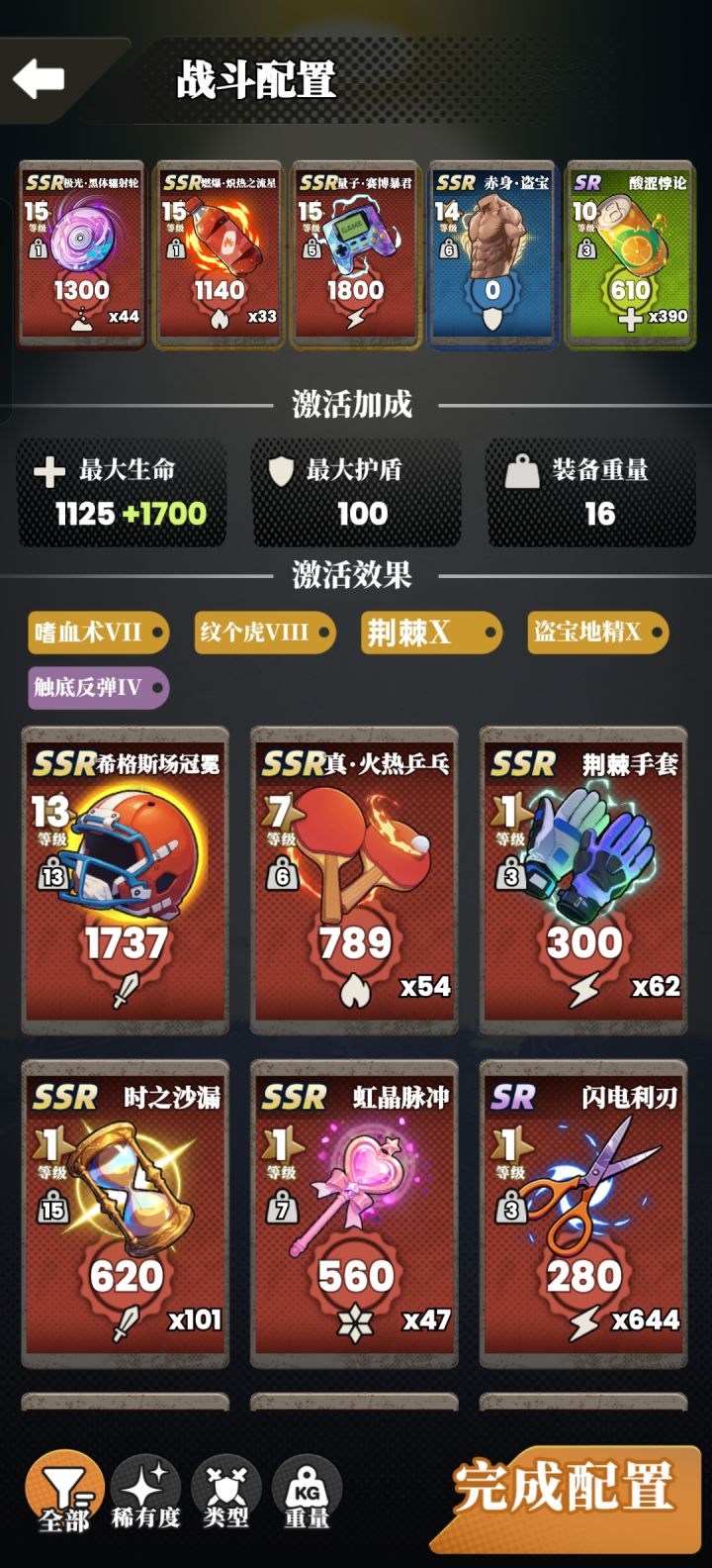 ✌️我管这套叫速杀流嘿嘿嘿✌️🔆除了速度特高的怪,这套速度基本上可以超过很多怪,打的很舒服,幸运的话可以秒杀对面不会被咬!被咬了防御回血量也够的,很难暴毙~👍👍✨最主要的续航输出就是飞轮和手柄,飞轮上吸血buff,手柄上荆棘buff~❗图上的蓝绿卡最好在到食堂副本之前升满级!不止是因为减重加速,食堂怪高攻,被食堂怪咬一口掉1000血还是很疼的😖,不升满的话可能状态回不上😢❗想靠先手秒杀对面