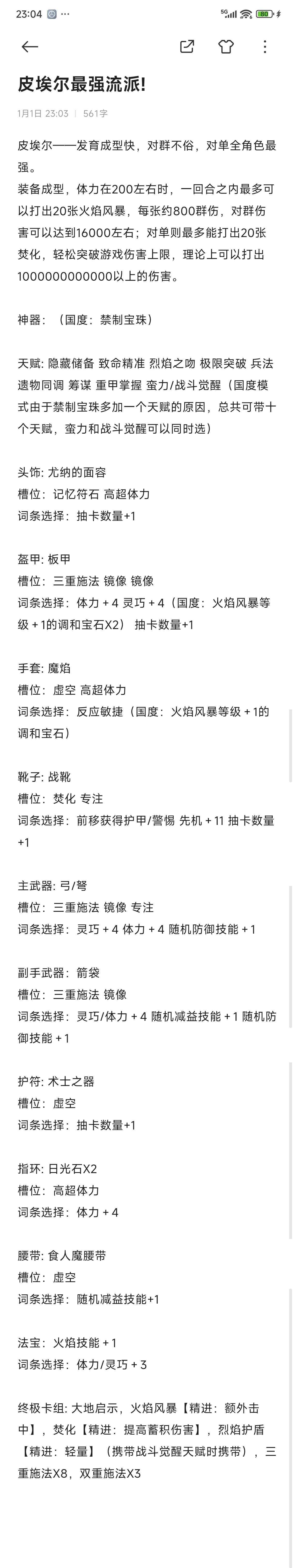 游玩时长189个小时,就只专门研究了皮埃尔这一个角色。这期间我参考了游戏中所有的装备,所有可以附魔和扩充的词条,所有天赋,符石,卡牌等等等等。但凡是有助于提升皮埃尔一丝一毫战力的,我都不会放过,经过无数次的比较和实测,写下了这篇皮埃尔最强流派攻略,希望对各位朋友们有帮助😊。