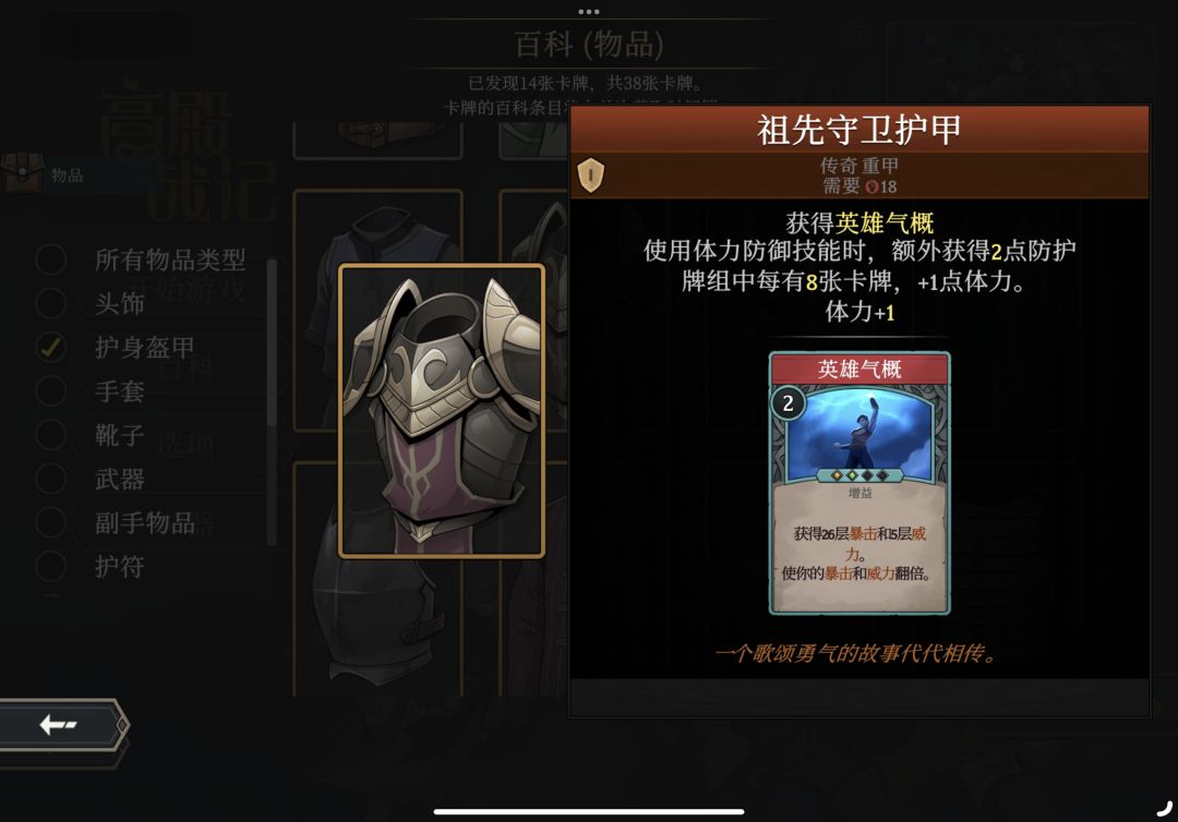 铠甲,祖先守卫铠甲 帽子,扭曲(高等级加大量战略点) 手套(传奇手套都加行动力),黄昏,钢铁(免疫缴械,提高威力) 副手,现实碎片,幻影球。 护肤,众生堕落 指环,衔尾蛇。 基本上就这几样了,感觉大部分传奇都是垃圾,小部分特殊流派能用到。 一般情况下,传奇还不如效果好一点的稀有装备,比如加百分比属性点的那些。