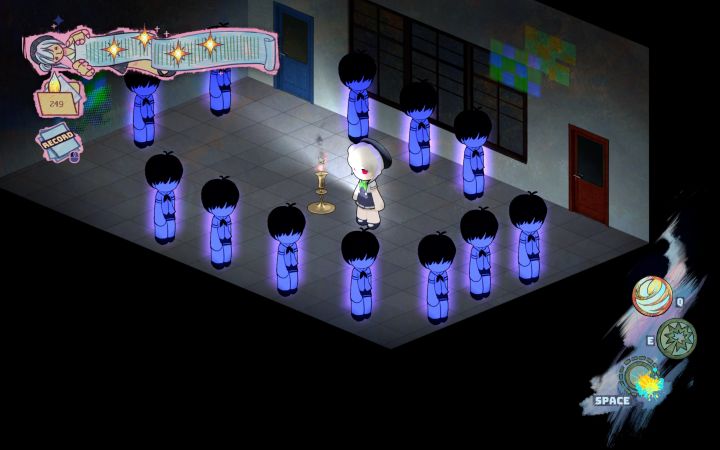 本期攻略介绍主角进入地下室后到进入迷宫前的游戏流程首先是这部分的试玩视频:接下来是分解图例:进入地下室后,左边有聚光饰品,+1光能上限这里有第3个拼图鼠标点击按住拖动到左边拼盘里,拼好拼图获得完整色盘笔记线索中有提到色盘的颜色对应迷宫中正确的门的颜色,之后会用到。点亮男生,触发对话。男生告诉主角,存在可以点亮的无机物(光烛)和教室连成的迷宫(尚未遇到),对话结束获得大量折光泪滴。靠