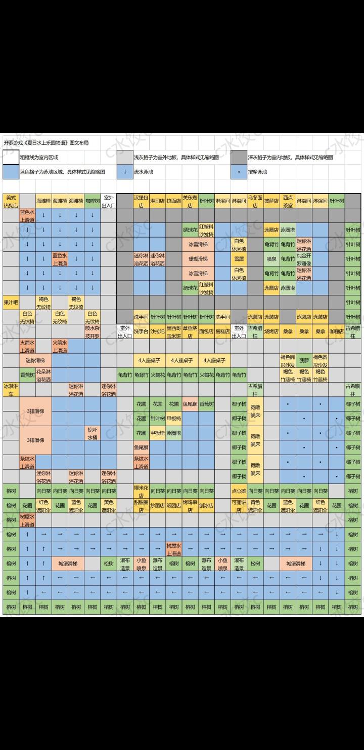 3.游戏中有超多建筑,类型分为6种,分别是:[装饰(可以对季节及人气有加成)][泳池(不同的泳池瓷砖)][功能性建筑(免费座椅可以恢复顾客的体力,付费座椅可以得到G还可以恢复顾客体力)][餐厅(最主要的赚钱场所,可以卖五个商品,商品可以自主研发,详细见食谱图)][游乐设施(可以对泳池有加成,分为气味加成和人气加成)][水上滑道(对连接的泳池有极大加成)],建筑多多益善,但是一开始不要建造太多,会破产,详细见攻略板块,建筑有几乎几十种,可以收集许多